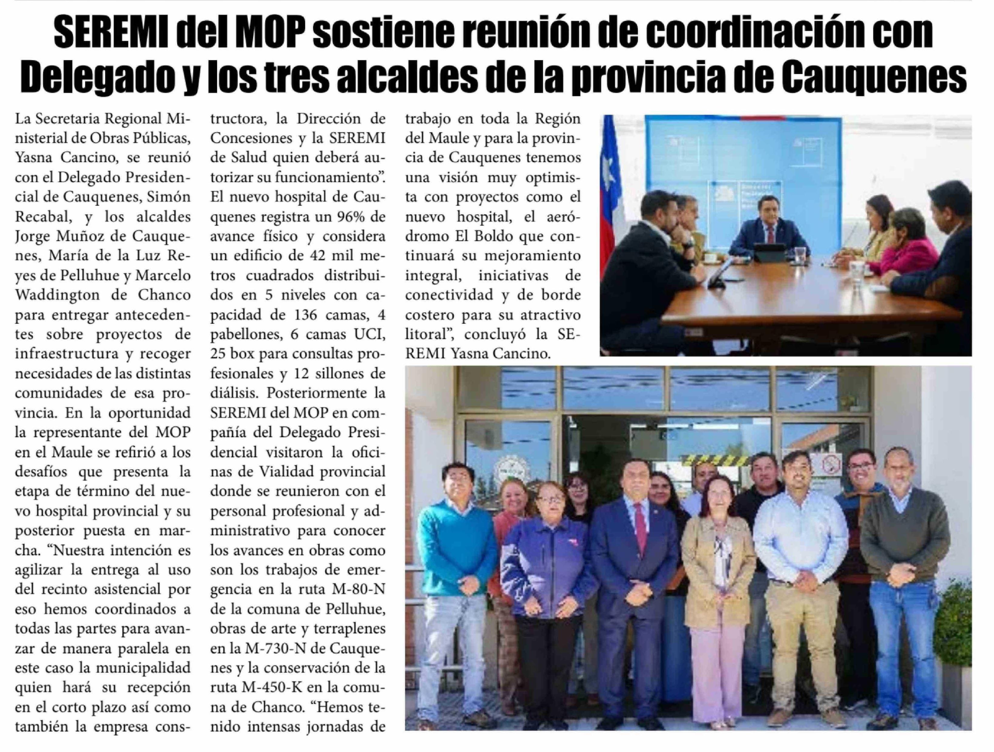 Título: SEREMI del MOP sostiene reunión de coordinación con Delegado y los tres alcaldes de la provincia de Cauquenes