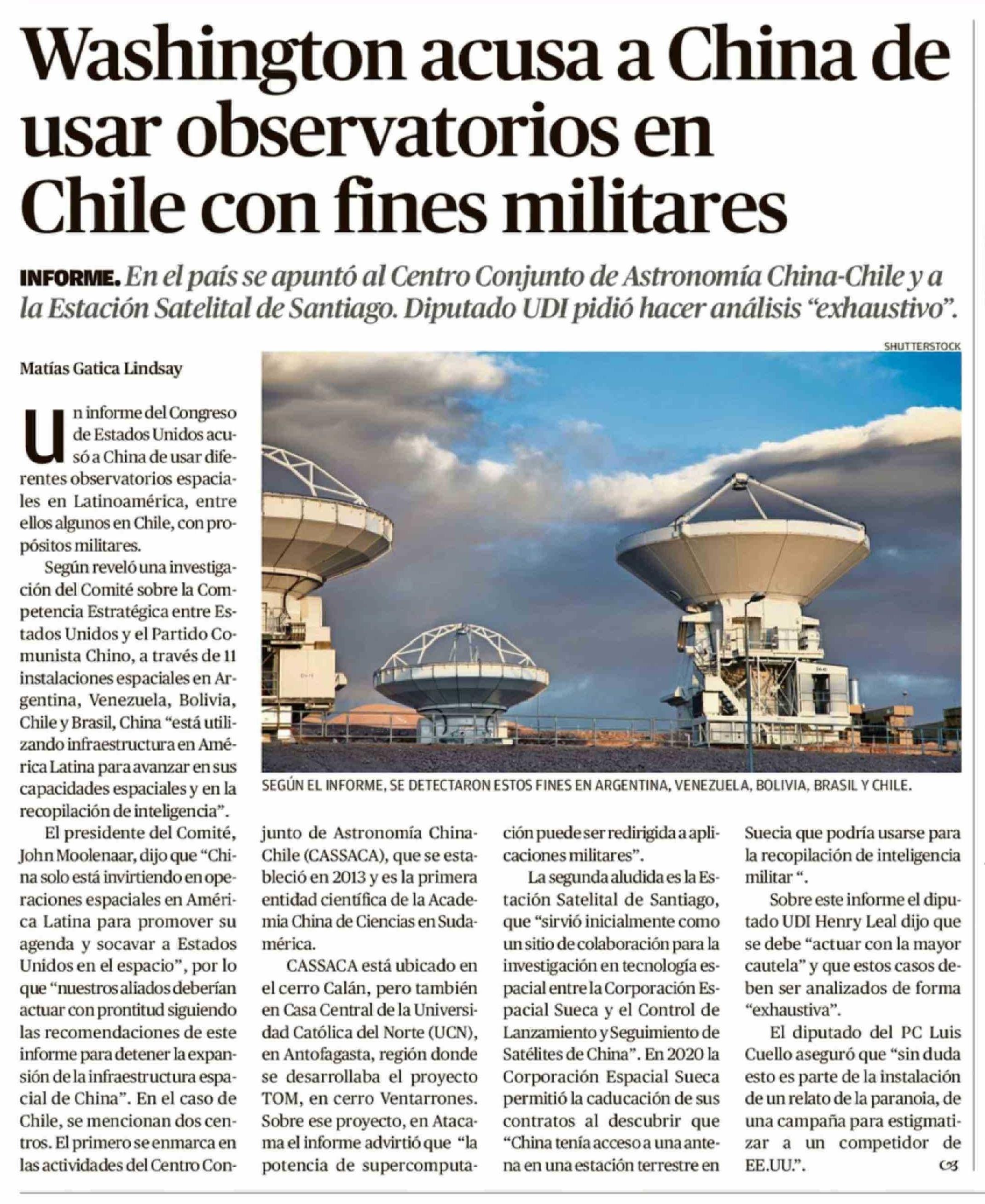 Título: Washington acusa a China de usar observatorios en Chile con fines militares