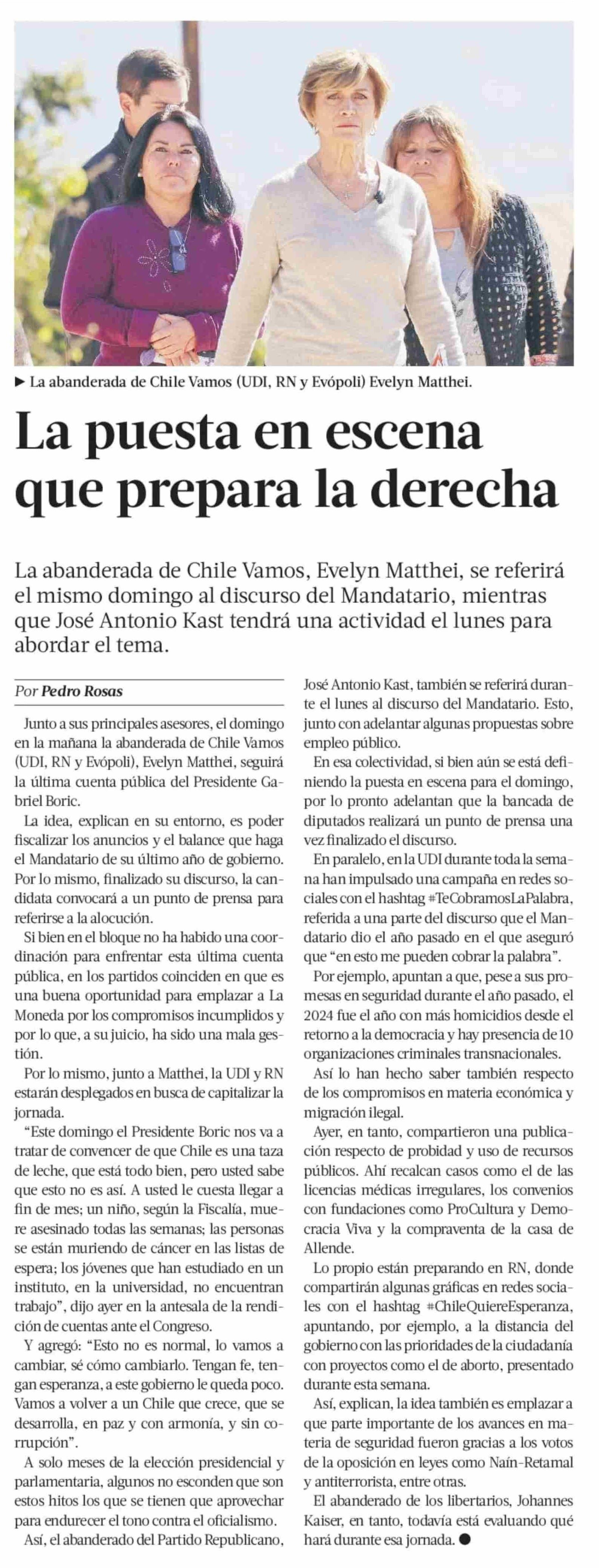 La puesta en escena que prepara la derecha 31-05-2025 La Tercera |