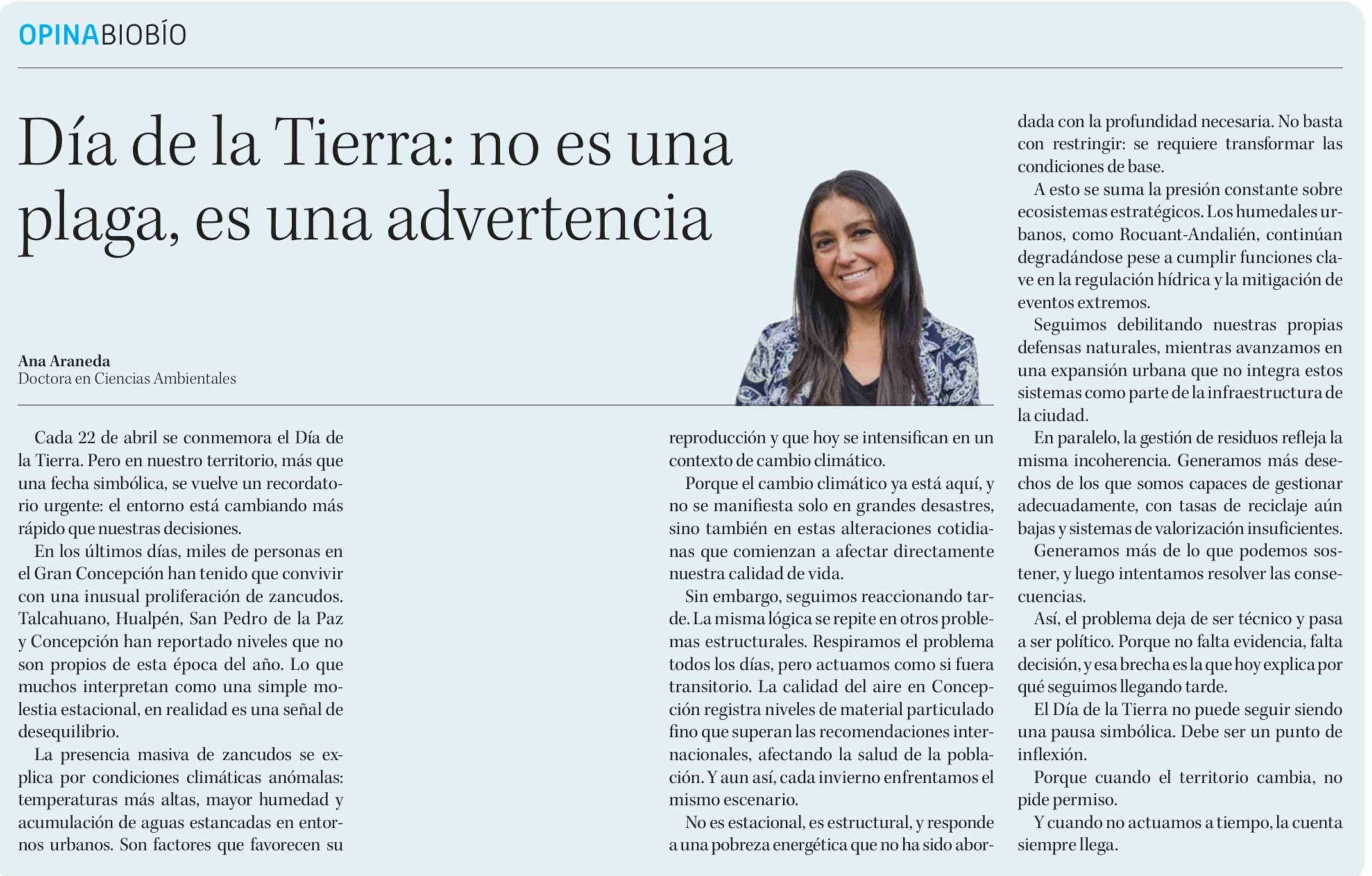 Título: Columnas de Opinión: Día de la Tierra: no es una plaga, es una advertencia