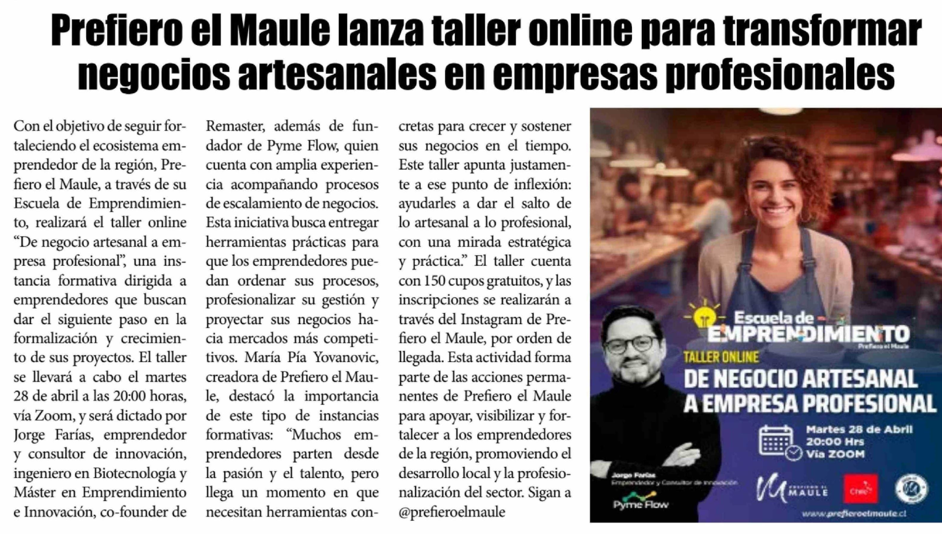 Título: Prefiero el Maule lanza taller online para transformar negocios artesanales en empresas profesionales