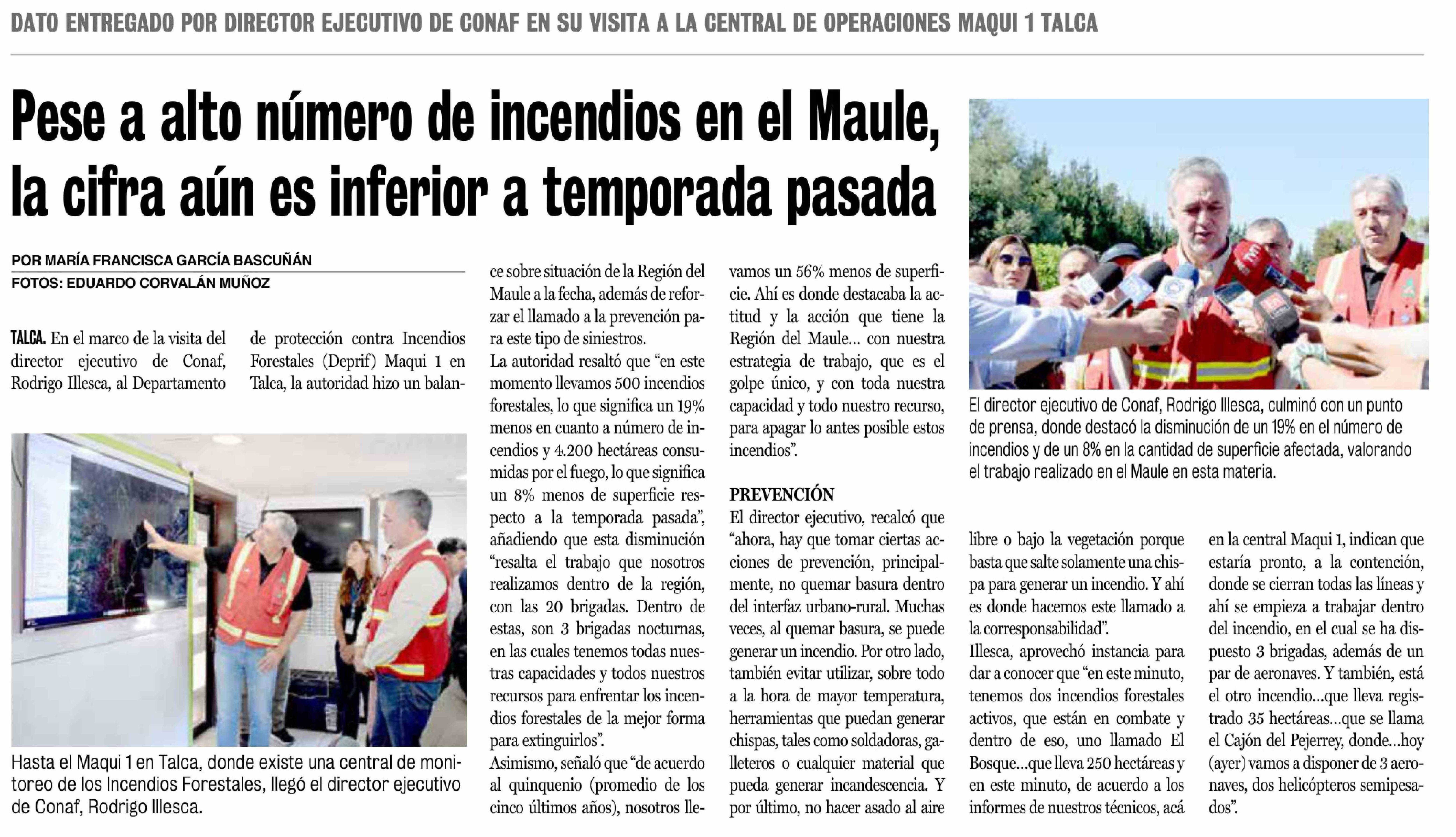 Título: Pese a alto número de incendios en el Maule, la cifra aún es inferior a temporada pasada
