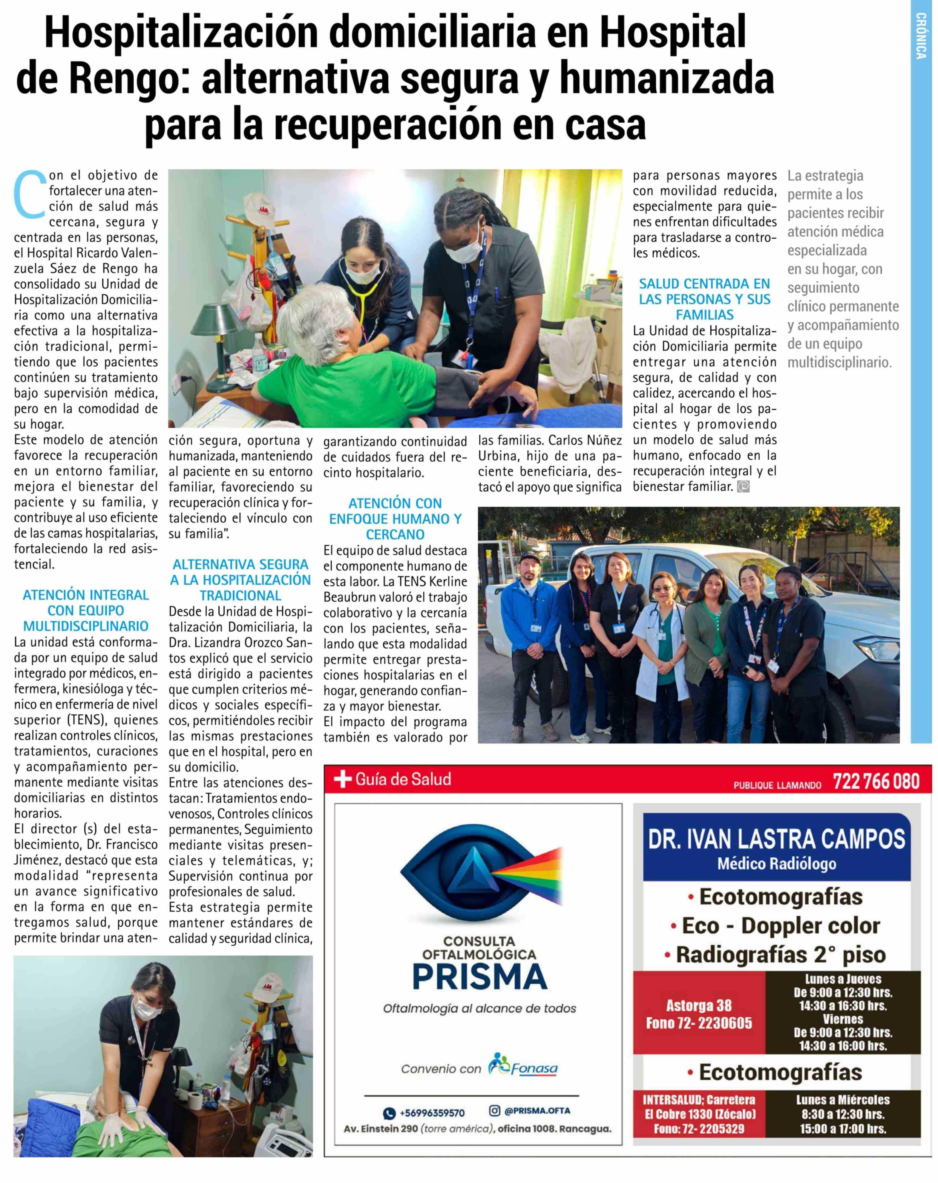 Hospitalización domiciliaria en Hospital de Rengo: alternativa segura y humanizada para la recuperación en casa 19-02-2026 El Rancagüino |