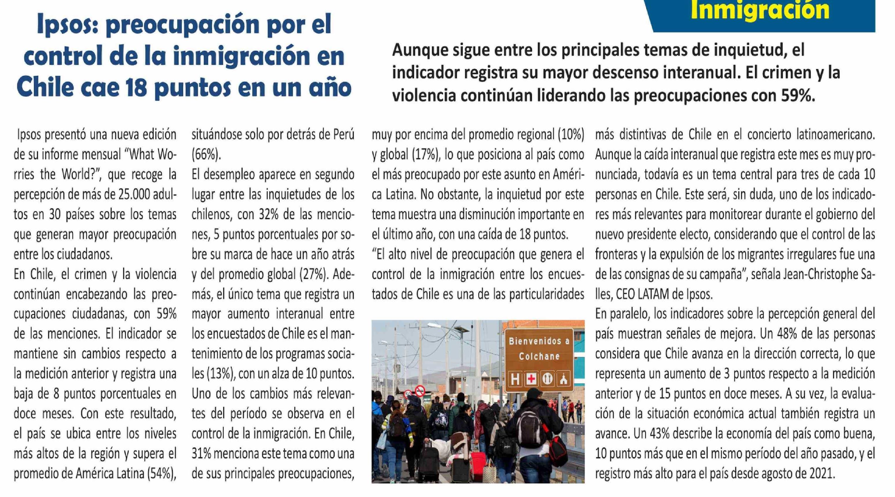 Título: Ipsos: preocupación por el control de la inmigración en Chile cae 18 puntos en un año