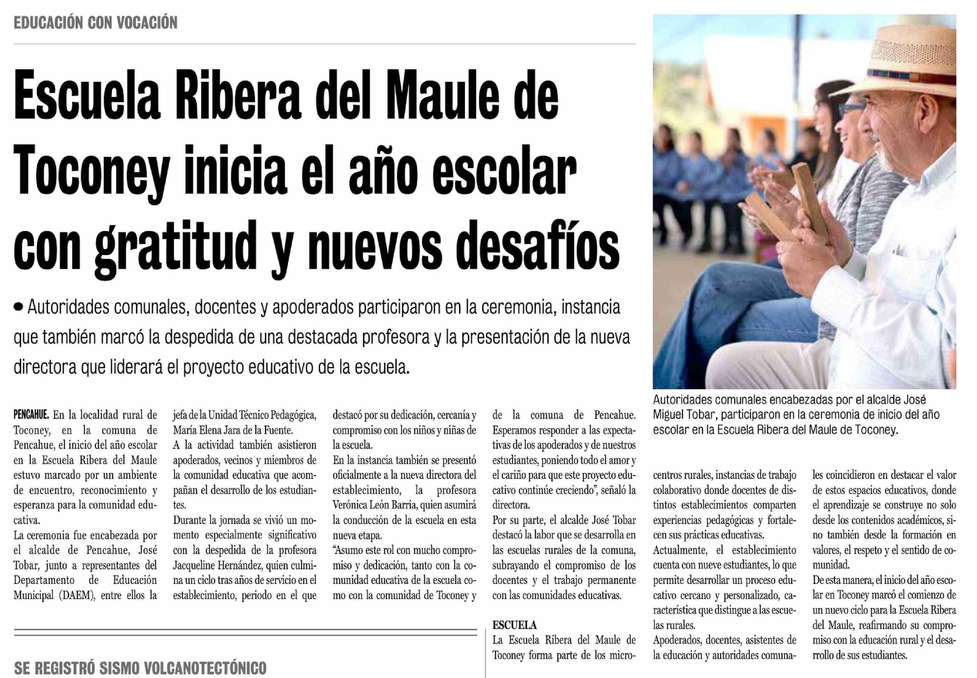| Título: | Escuela Ribera del Maule de Toconey inicia el año escolar con gratitud y nuevos desafíos |