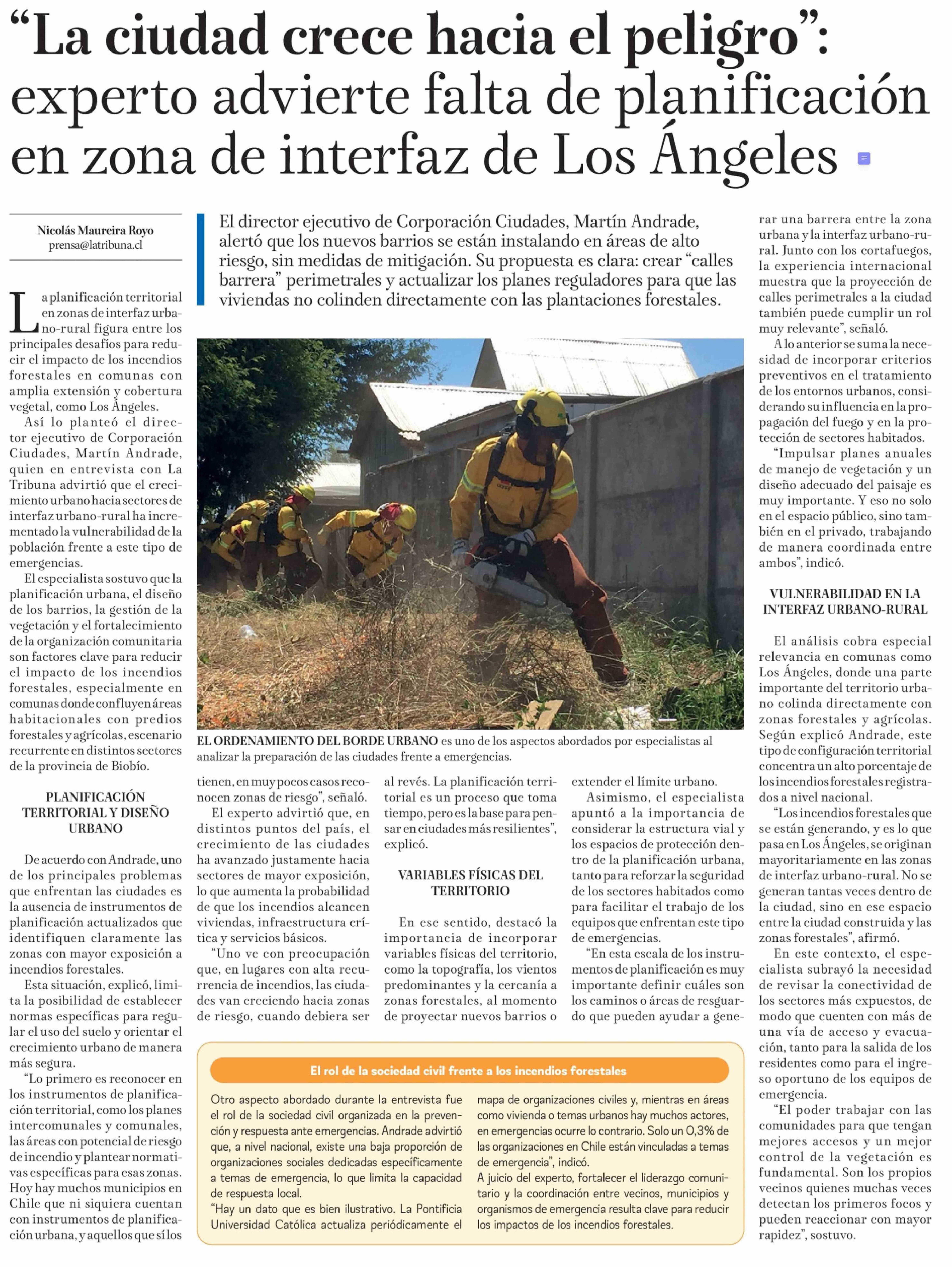 "La ciudad crece hacia el peligro": experto advierte falta de planificación en zona de interfaz de Los Angeles 03-02-2026 La Tribuna |
