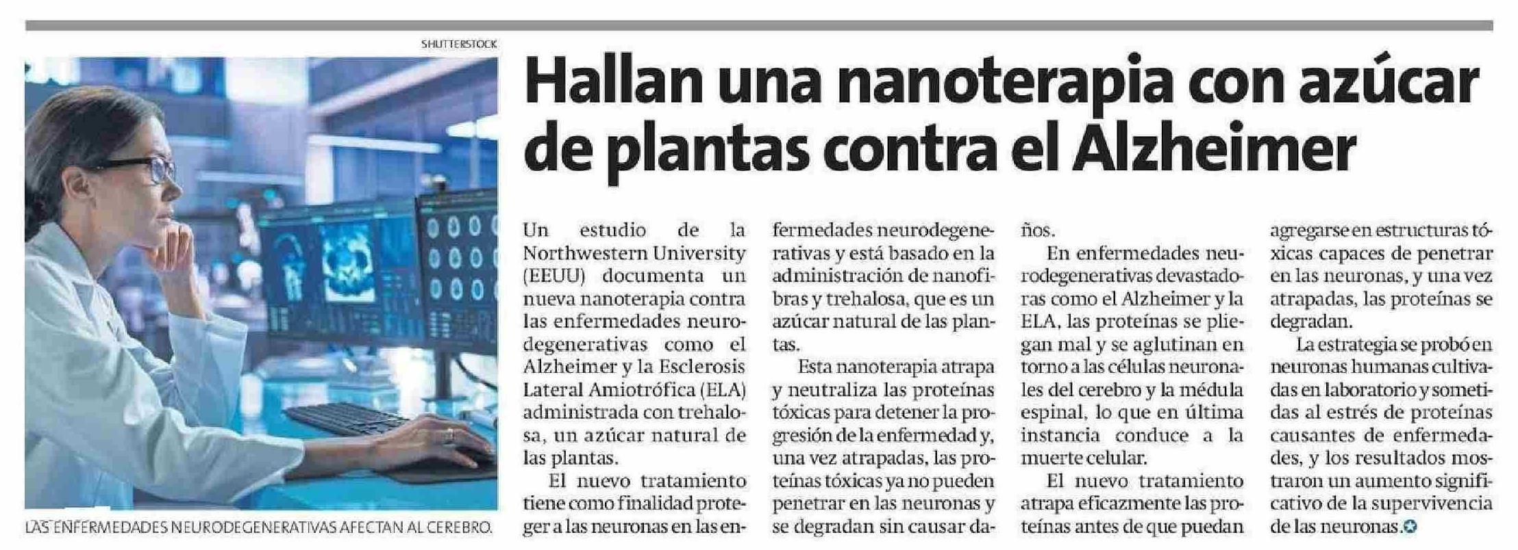 Hallan una nanoterapia con azúcar de plantas contra el Alzheimer 22-05-2025 La Estrella de Arica |