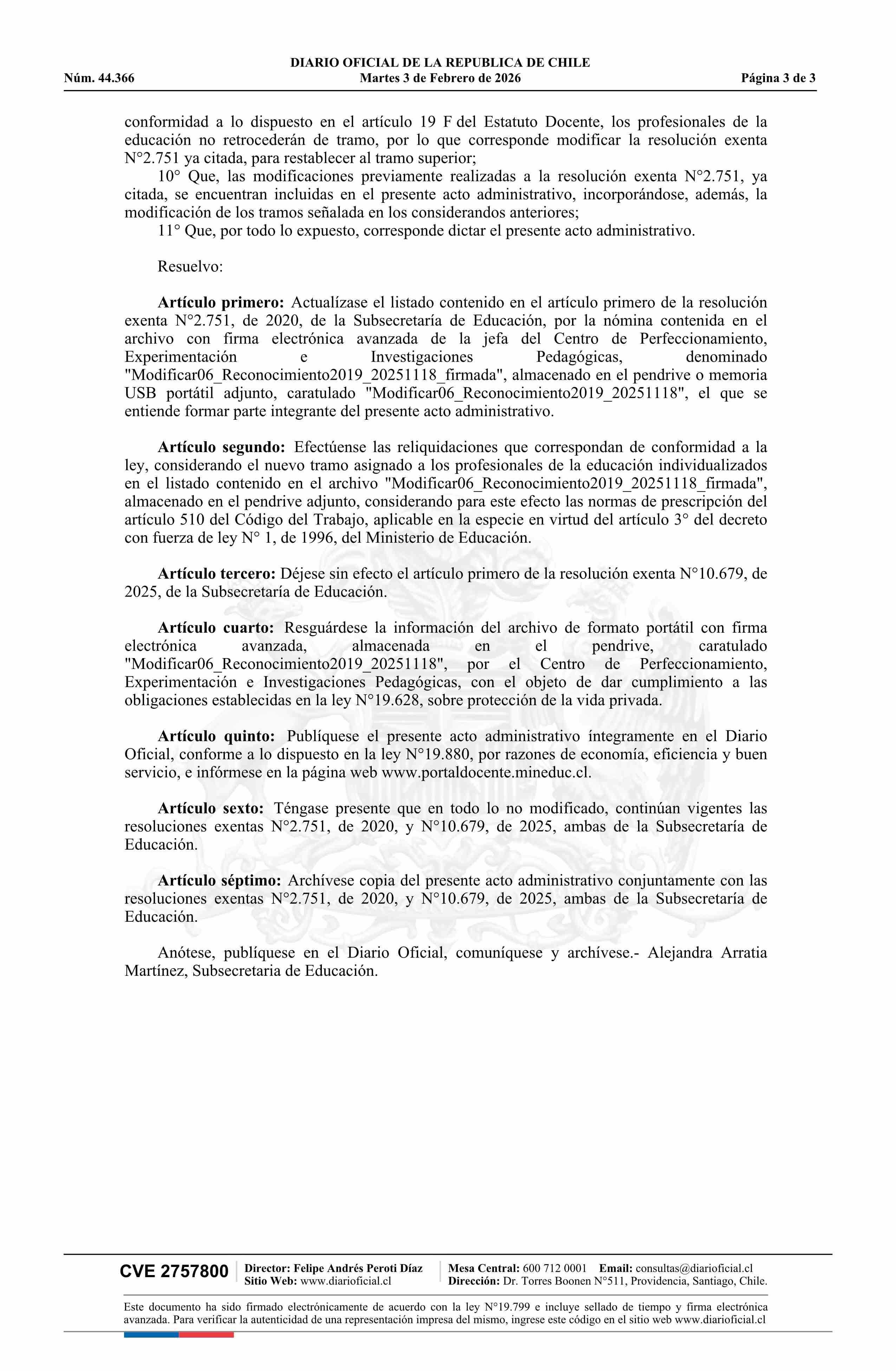Título: Resolución exenta número 152, de 2026.- Actualiza el listado contenido en la resolución N° 2.751 exenta, de 2020, ordenando las reliquidaciones que indica y deja sin efecto parcialmente la resolución N°10.679 exenta, de 2025