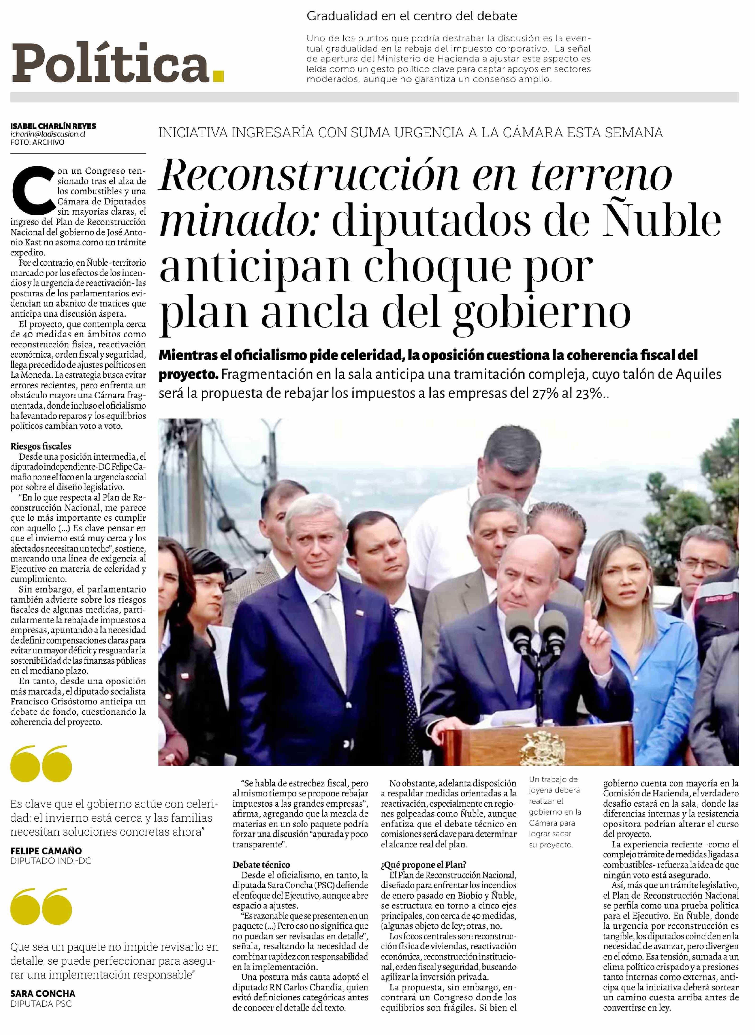 Reconstrucción en terreno minado: diputados de Nuble anticipan choque por plan ancla del gobierno 08-04-2026 La Discusión |