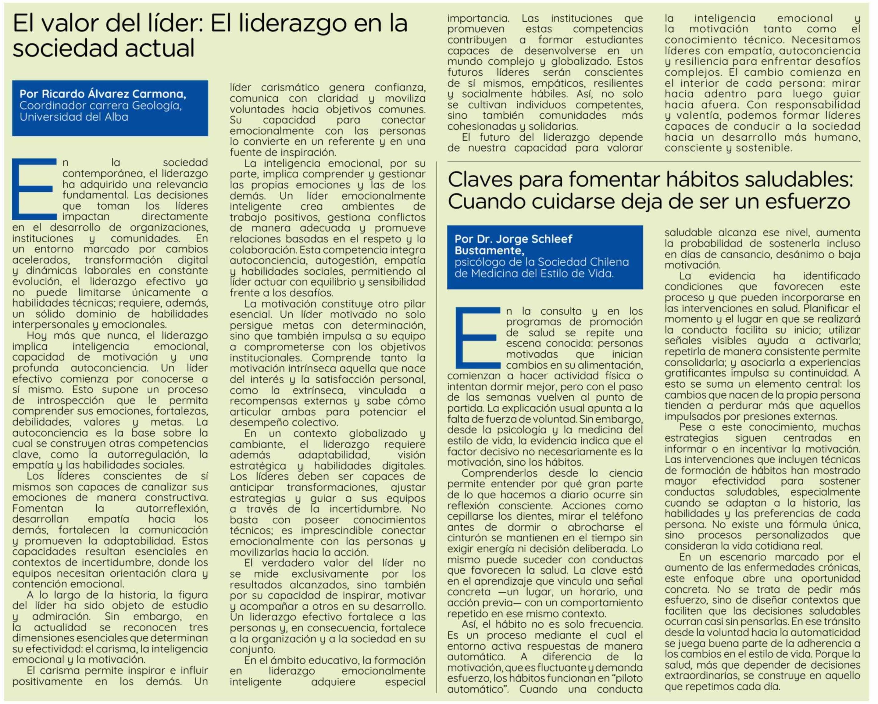 Columnas de Opinión: El valor del líder: El liderazgo en la sociedad actual 26-02-2026 El Insular |