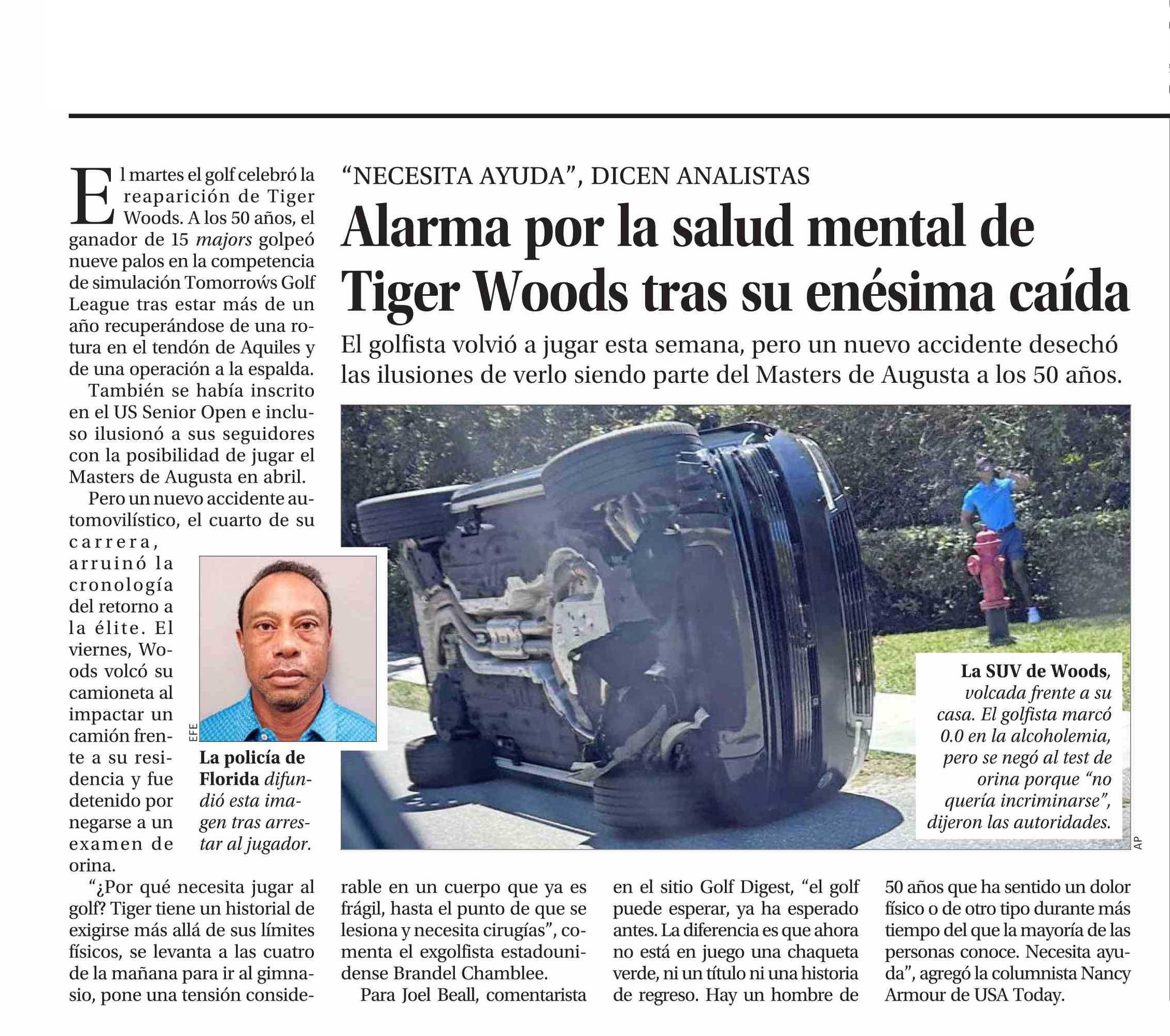 | Título: | Alarma por la salud mental de Tiger Woods tras su enésima caída |