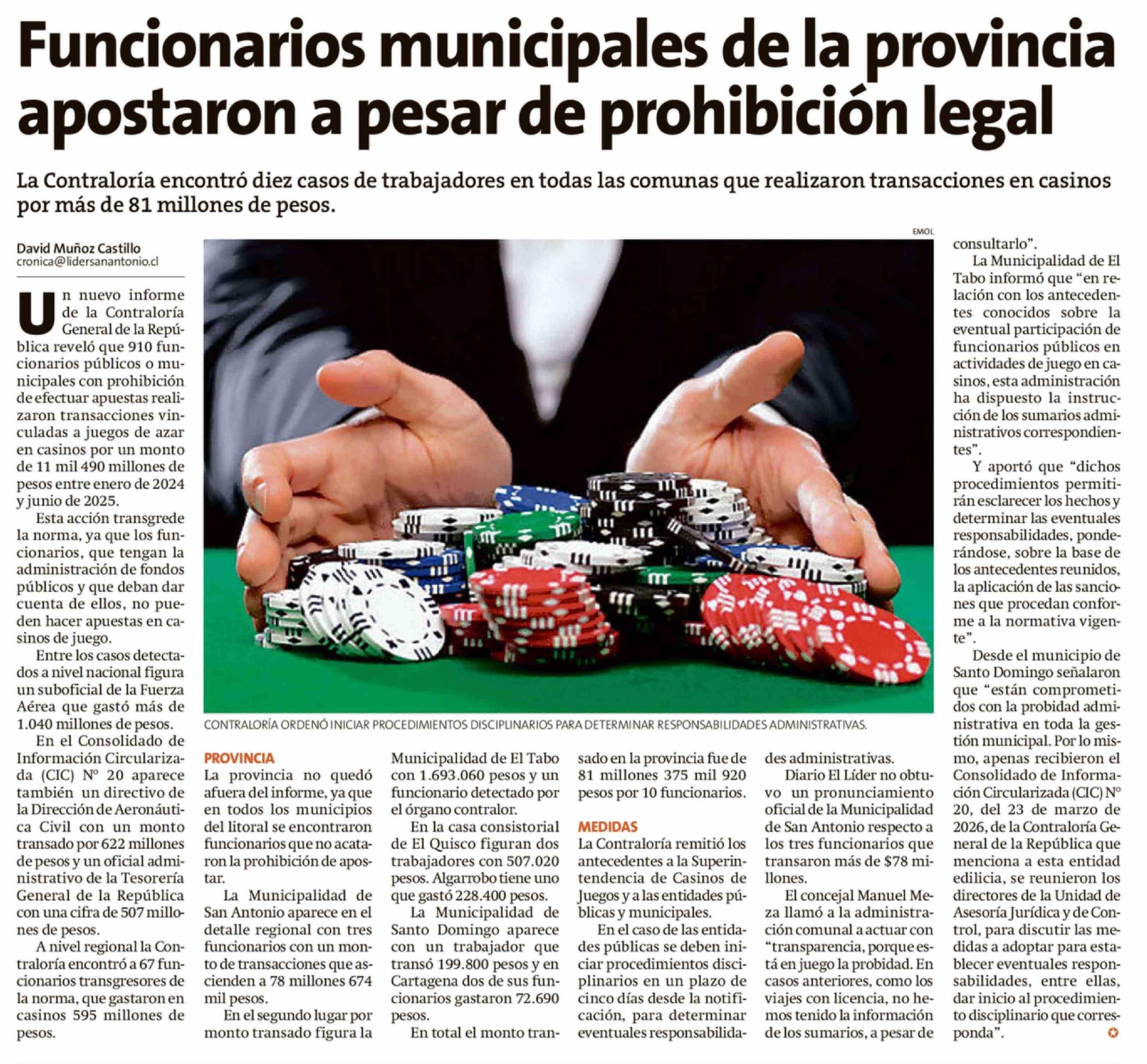 Título: Funcionarios municipales de la provincia apostaron a pesar de prohibición legal