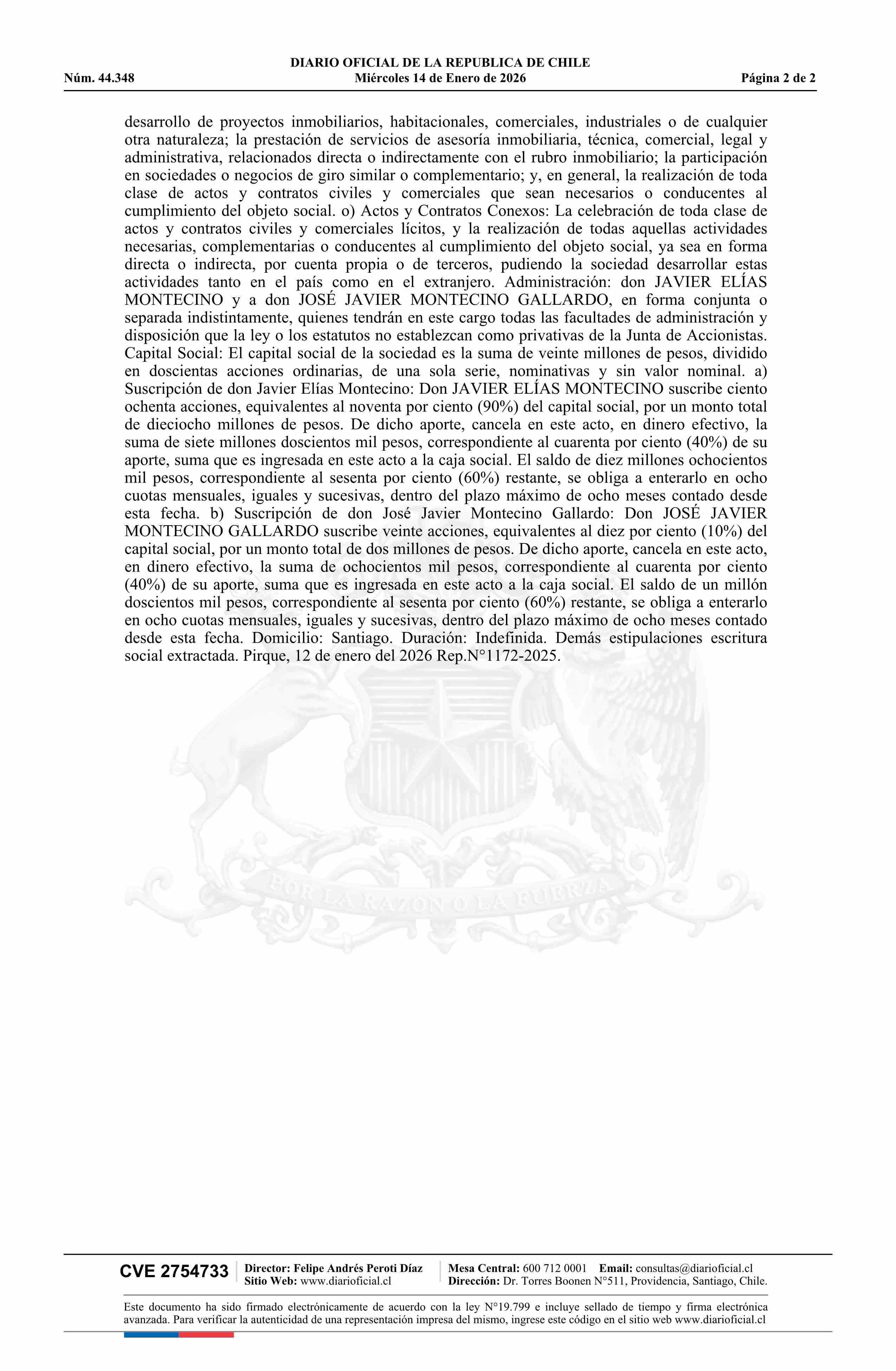 MONTECINO Y BERRÍOS SpA 14-01-2026 Diario Oficial Edición Electrónica |