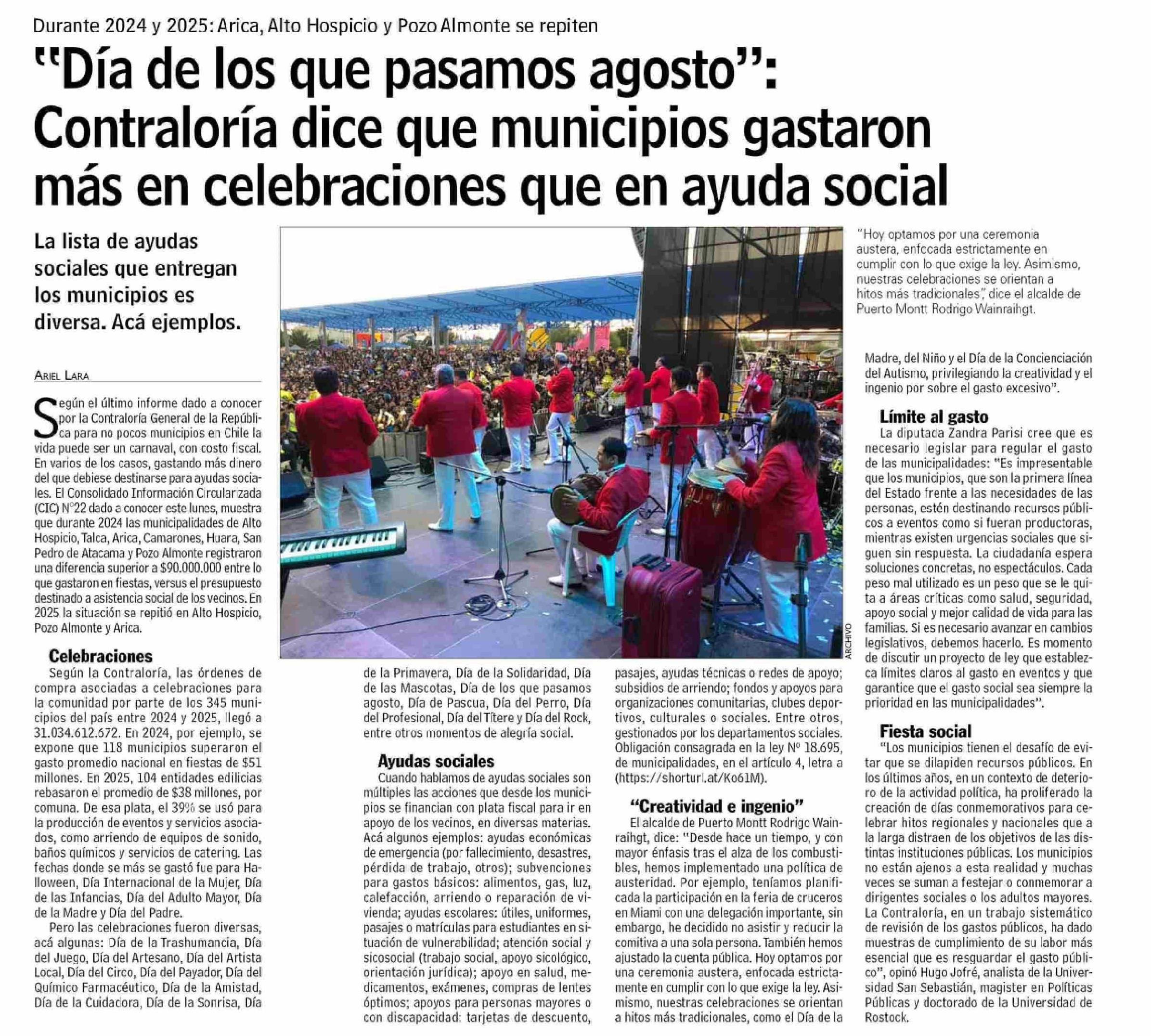 | Título: | “Día de los que pasamos agosto””: Contraloría dice que municipios gastaron más en celebraciones que en ayuda social |