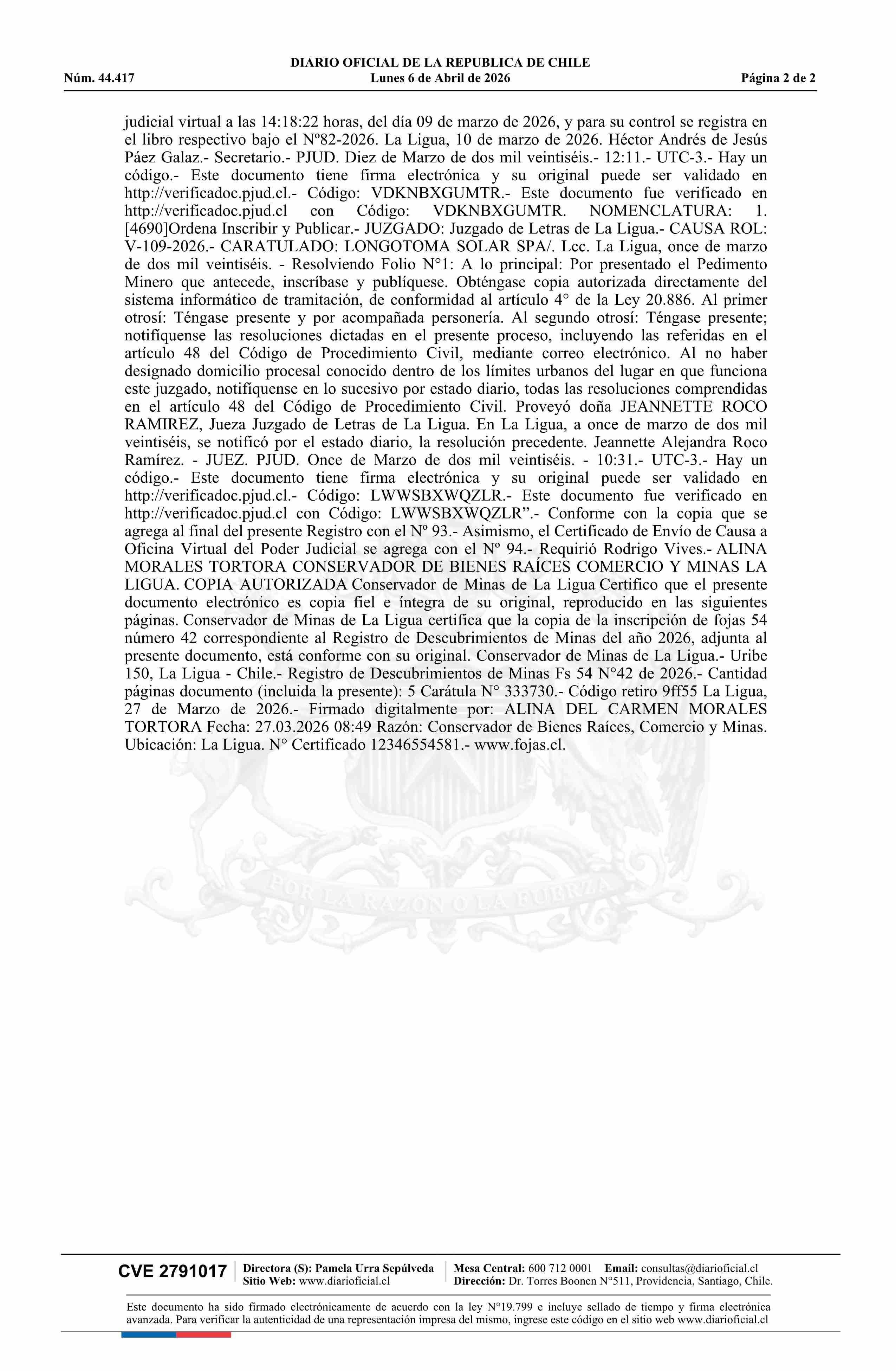 06-04-2026 DIARIO OFICIAL CHILE - BOLETÍN OFICIAL DE MINERÍA