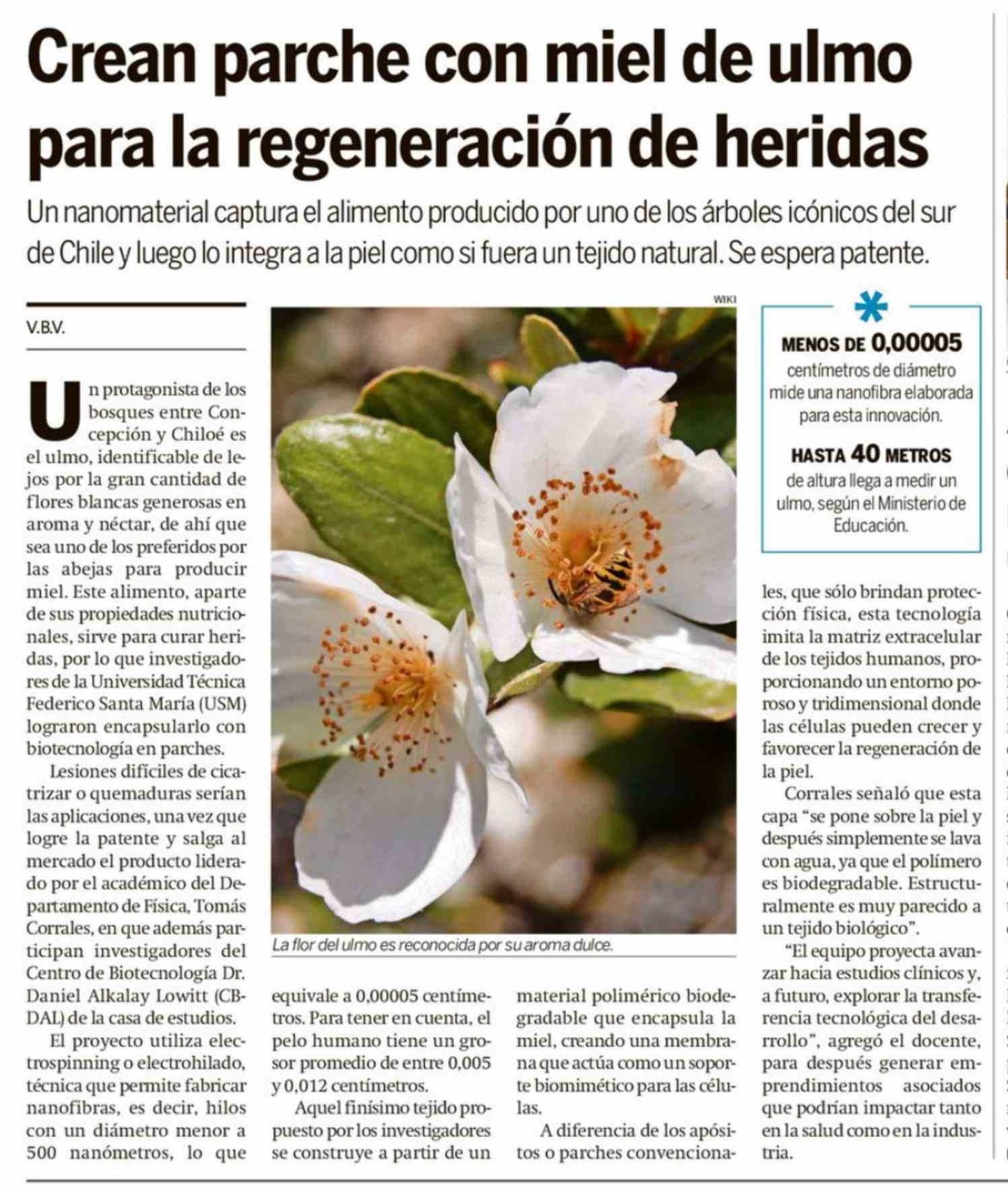 | Título: | Crean parche con miel de ulmo para la regeneración de heridas |