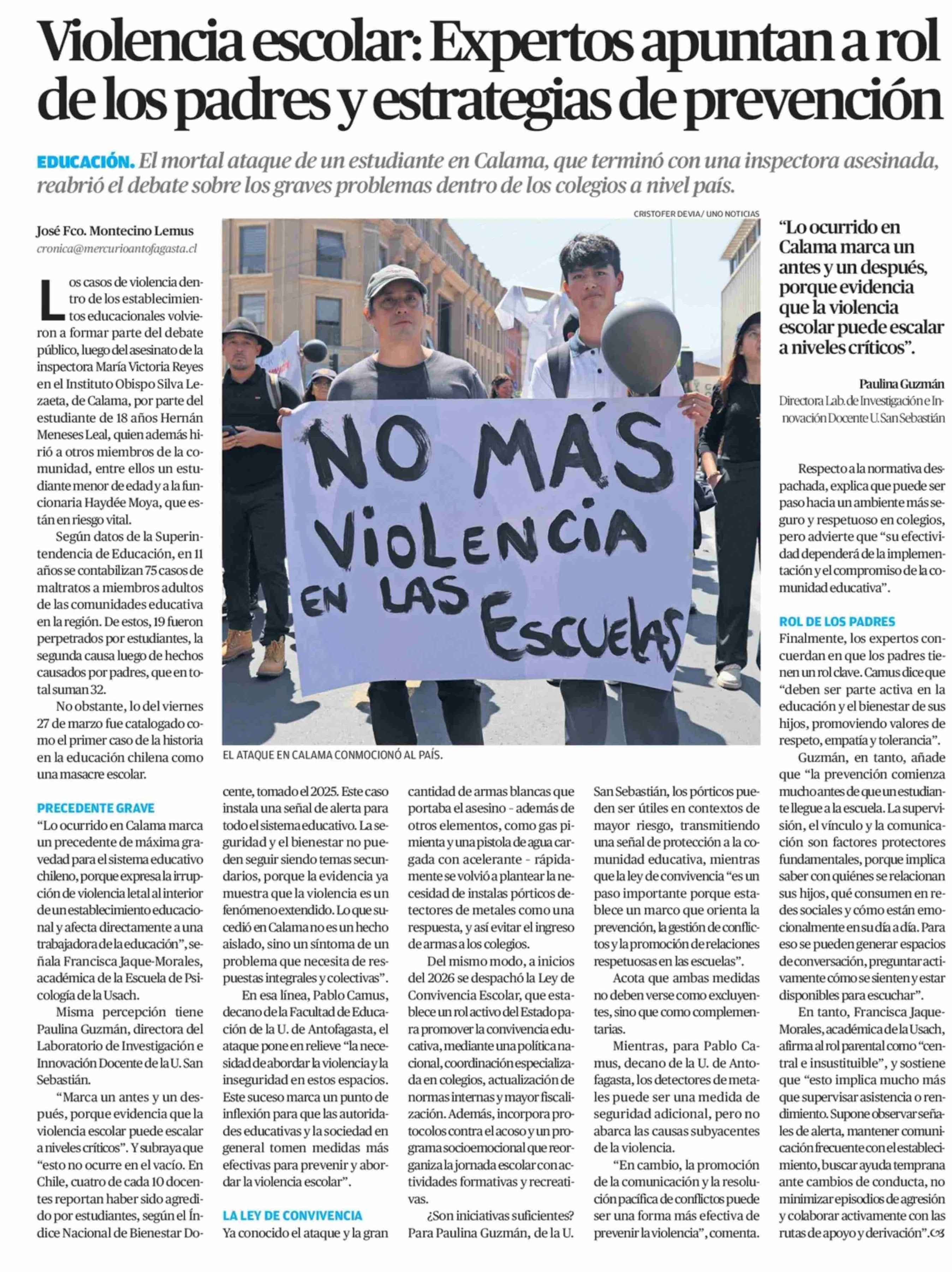 Título: Violencia escolar: Expertos apuntan a rol de los padres y estrategias de prevención