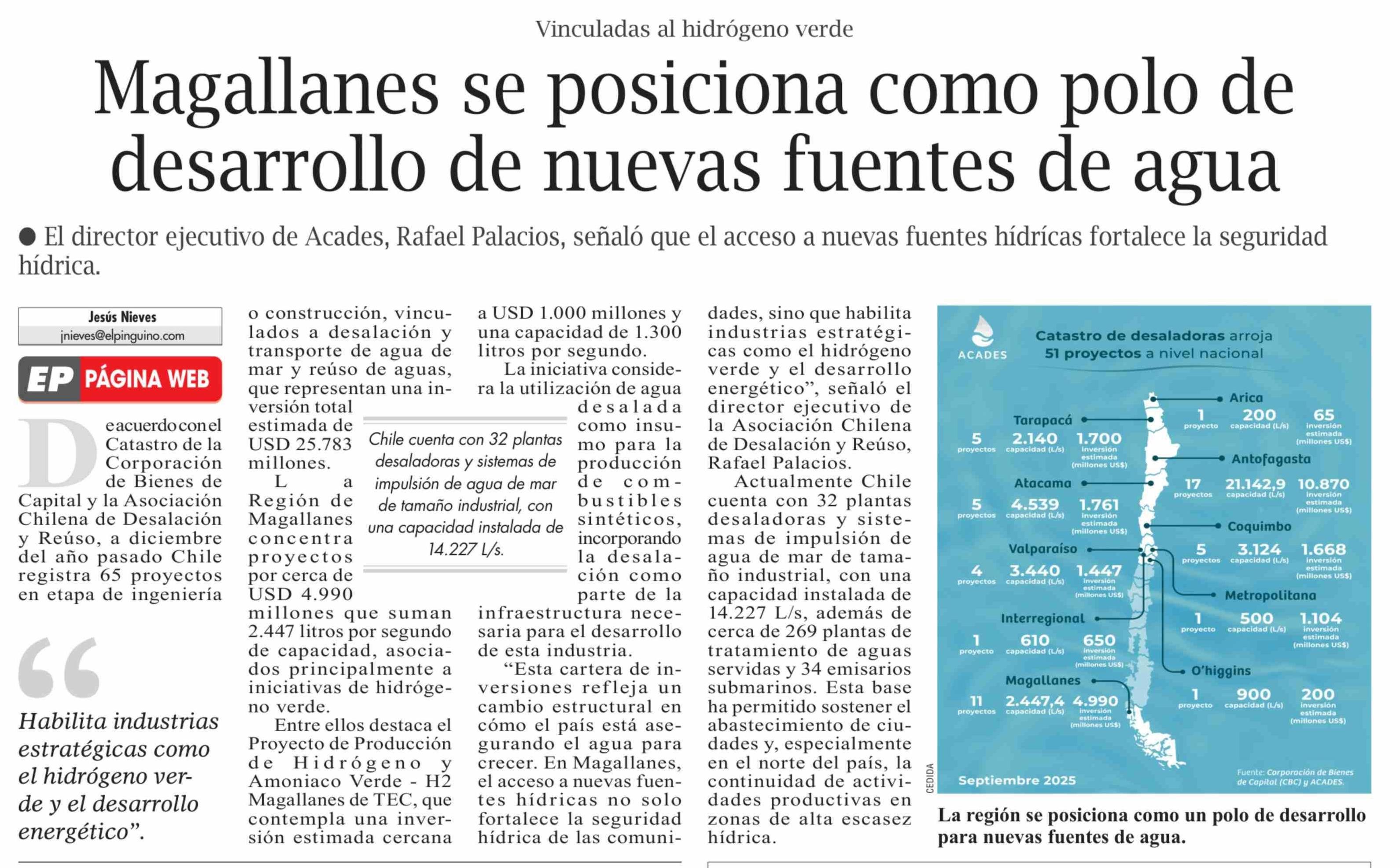 Magallanes se posiciona como polo de desarrollo de nuevas fuentes de agua 17-02-2026 El Pingüino |