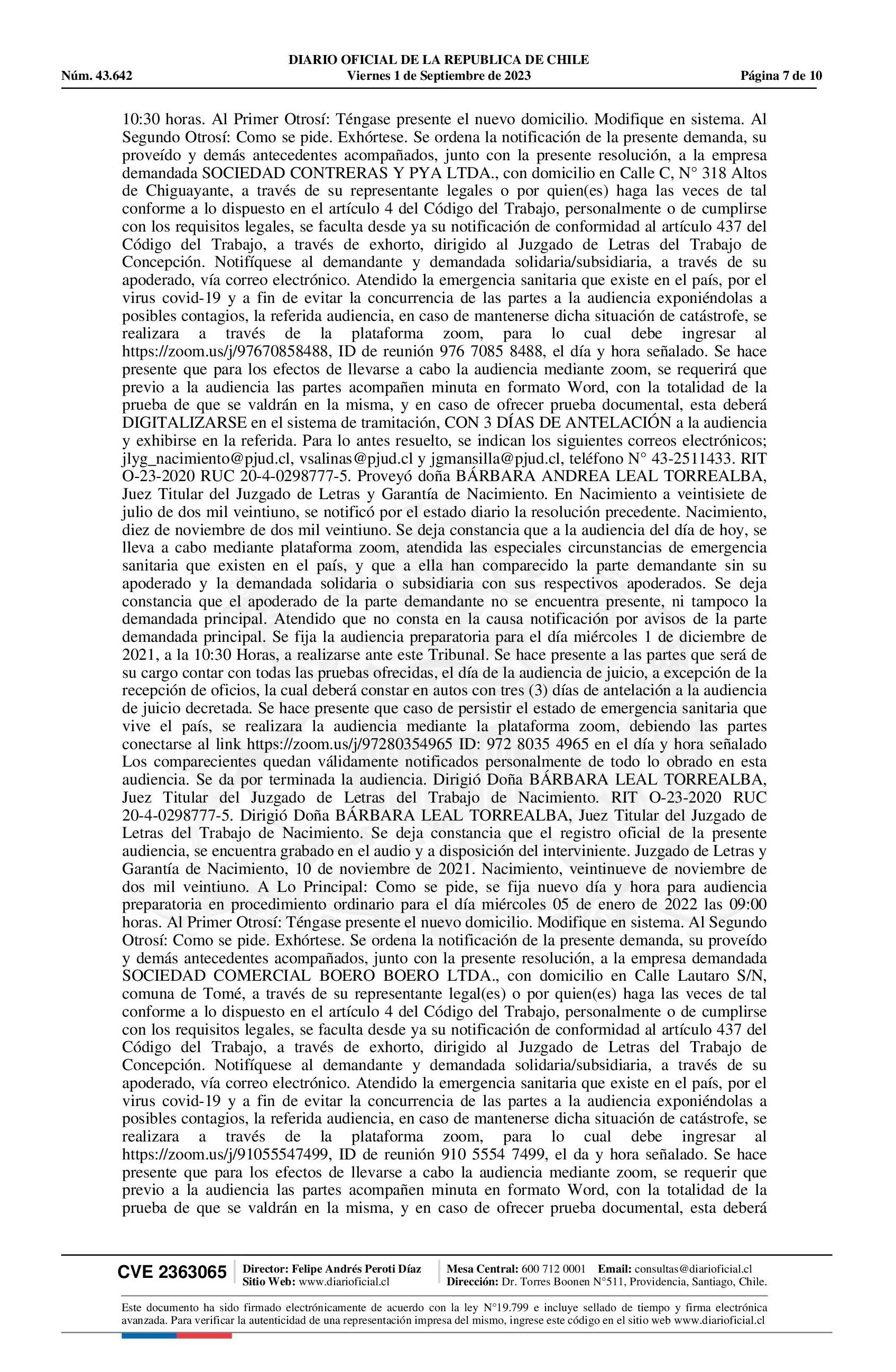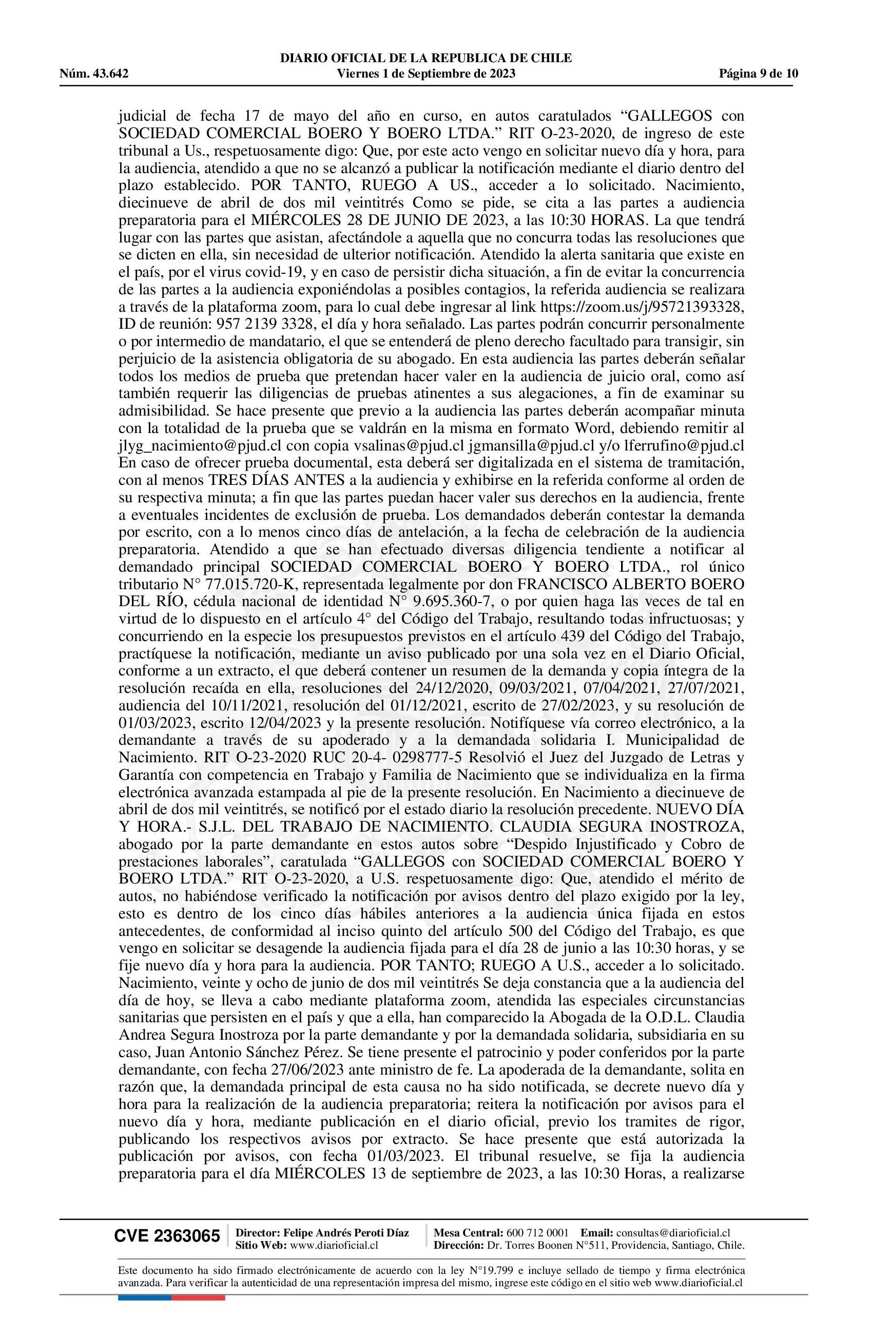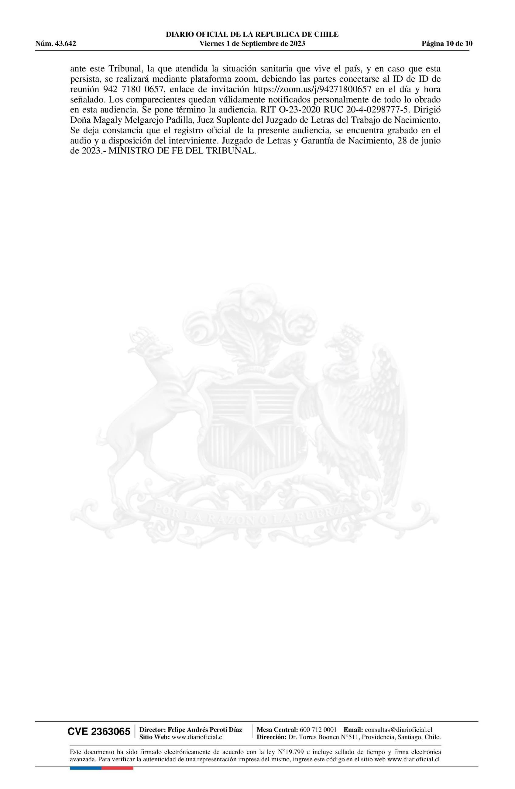 Notificación 01-09-2023 Diario Oficial Edición Electrónica |