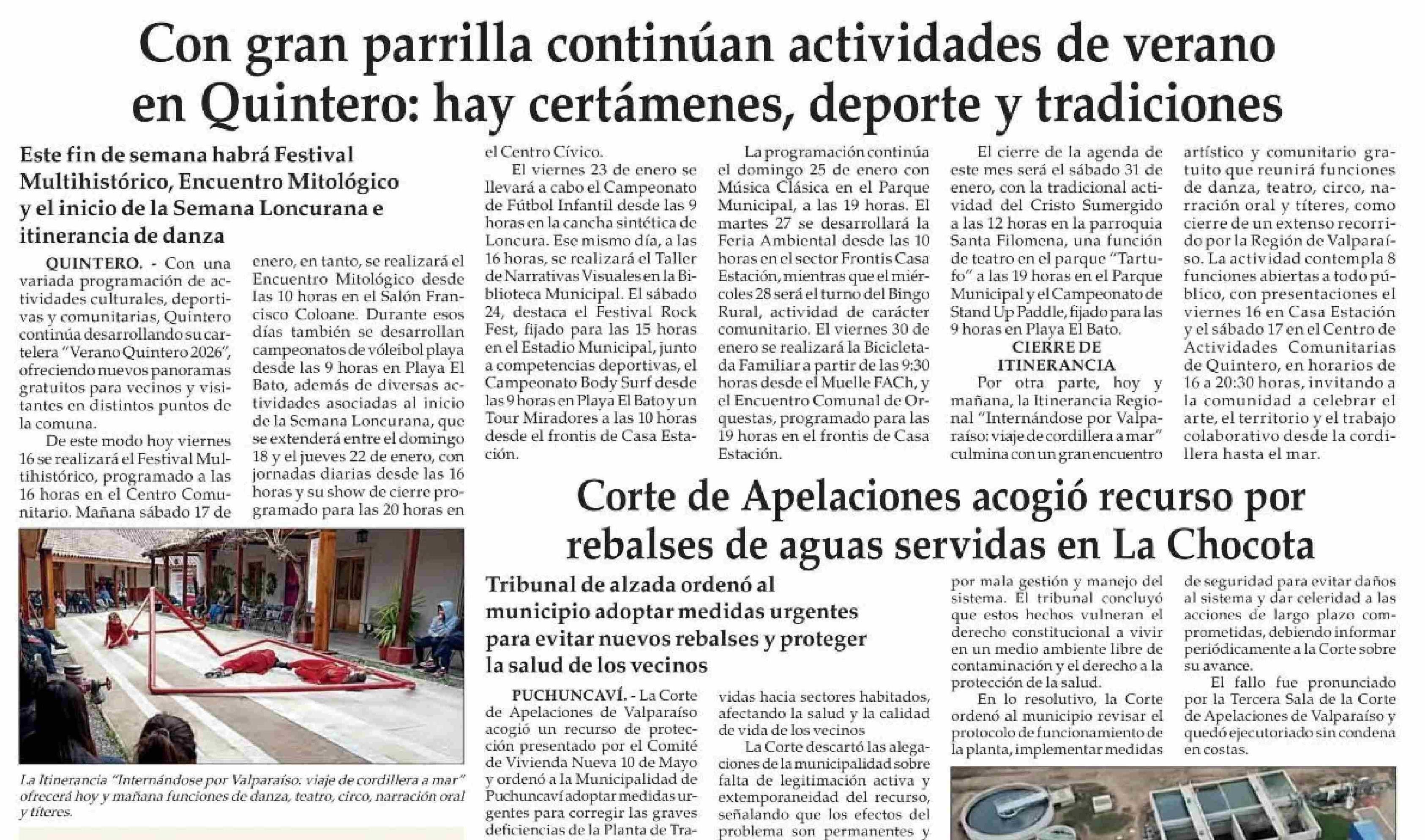 | Fecha: | 16-01-2026 | Sector: | Noticia general | Región: | Región de Valparaíso |