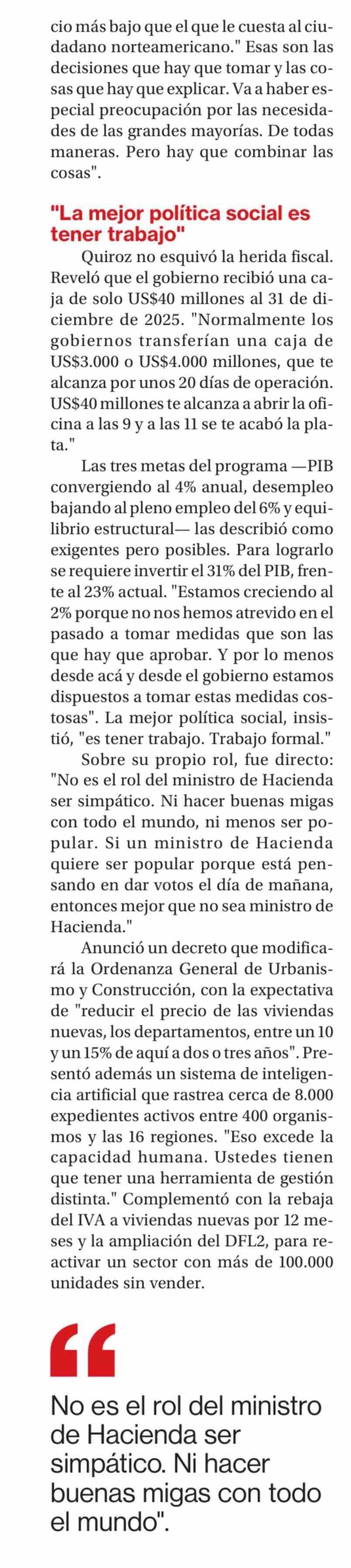 Quiroz prepara duras medidas 19-03-2026 La Segunda |