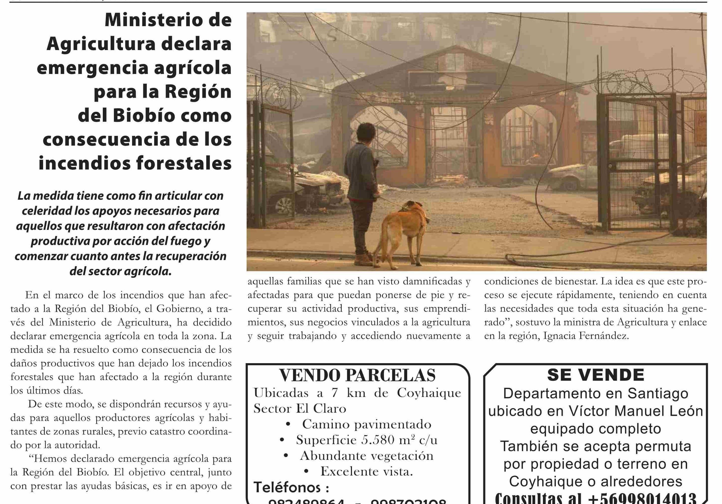 Título: Ministerio de Agricultura declara emergencia agrícola para la Región del Biobío como consecuencia de los incendios forestales