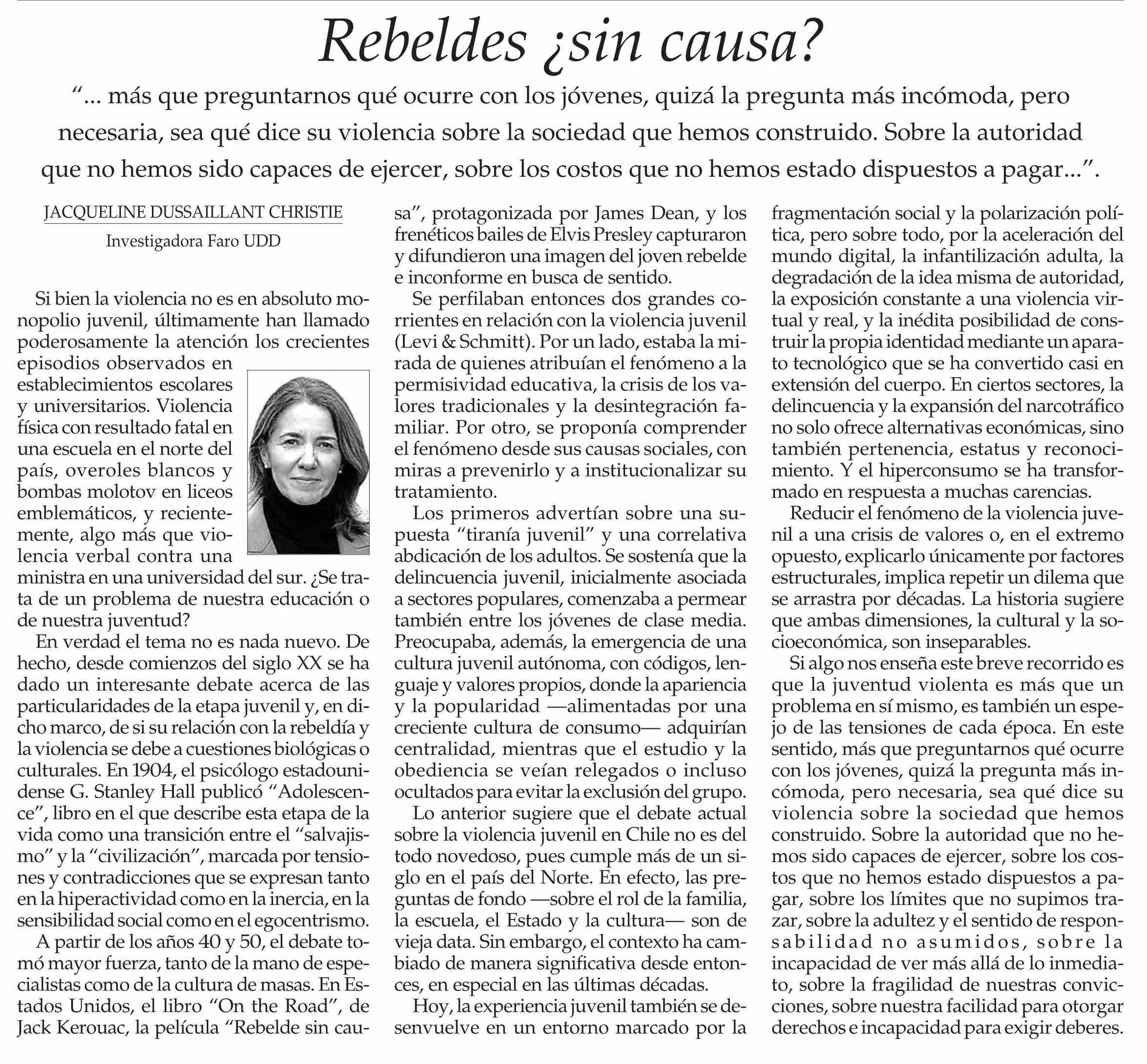 Columnas de Opinión: Rebeldes ¿sin causa? 10-04-2026 El Mercurio |