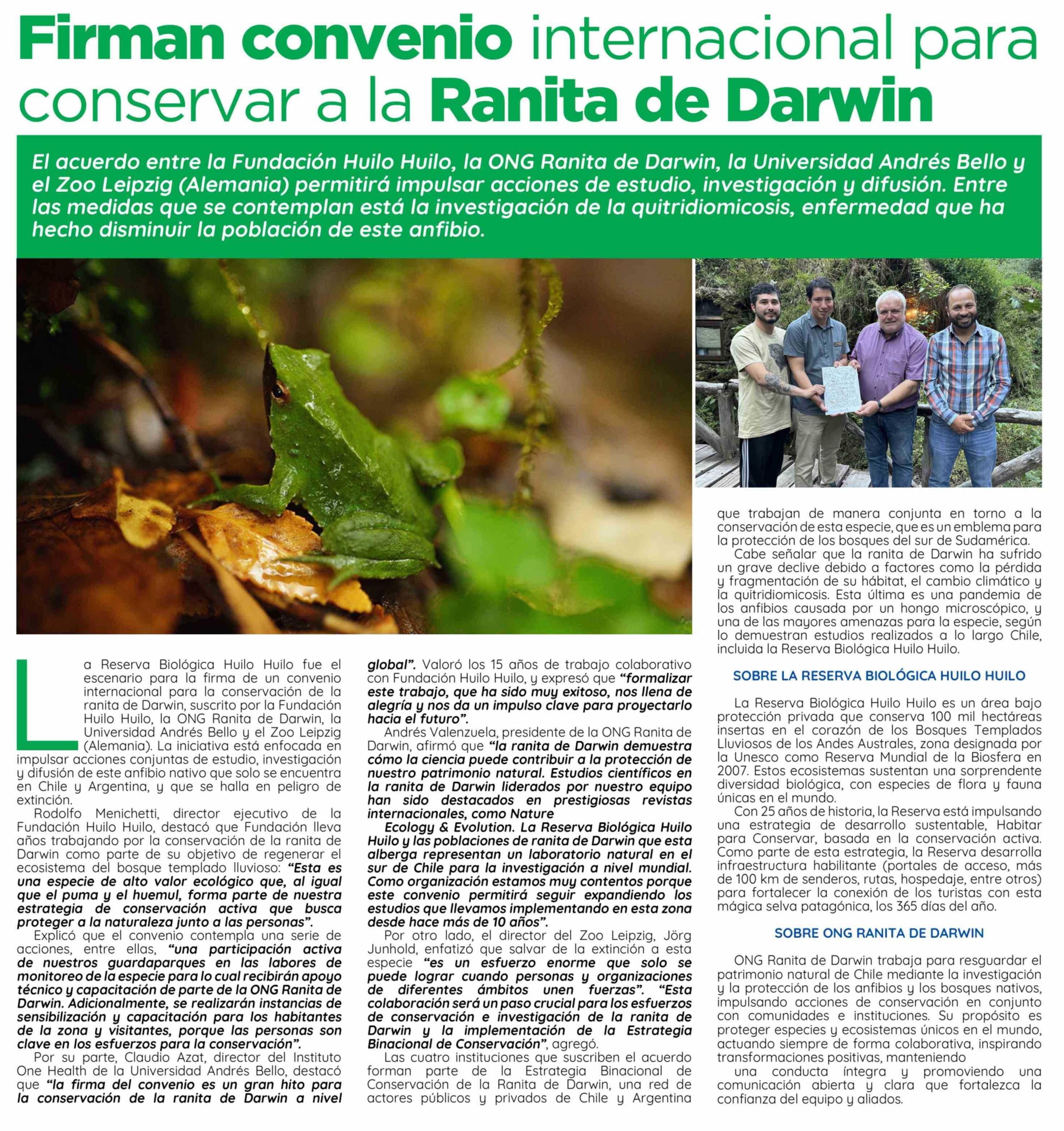 | Título: | Firman convenio internacional para conservar a la Ranita de Darwin |