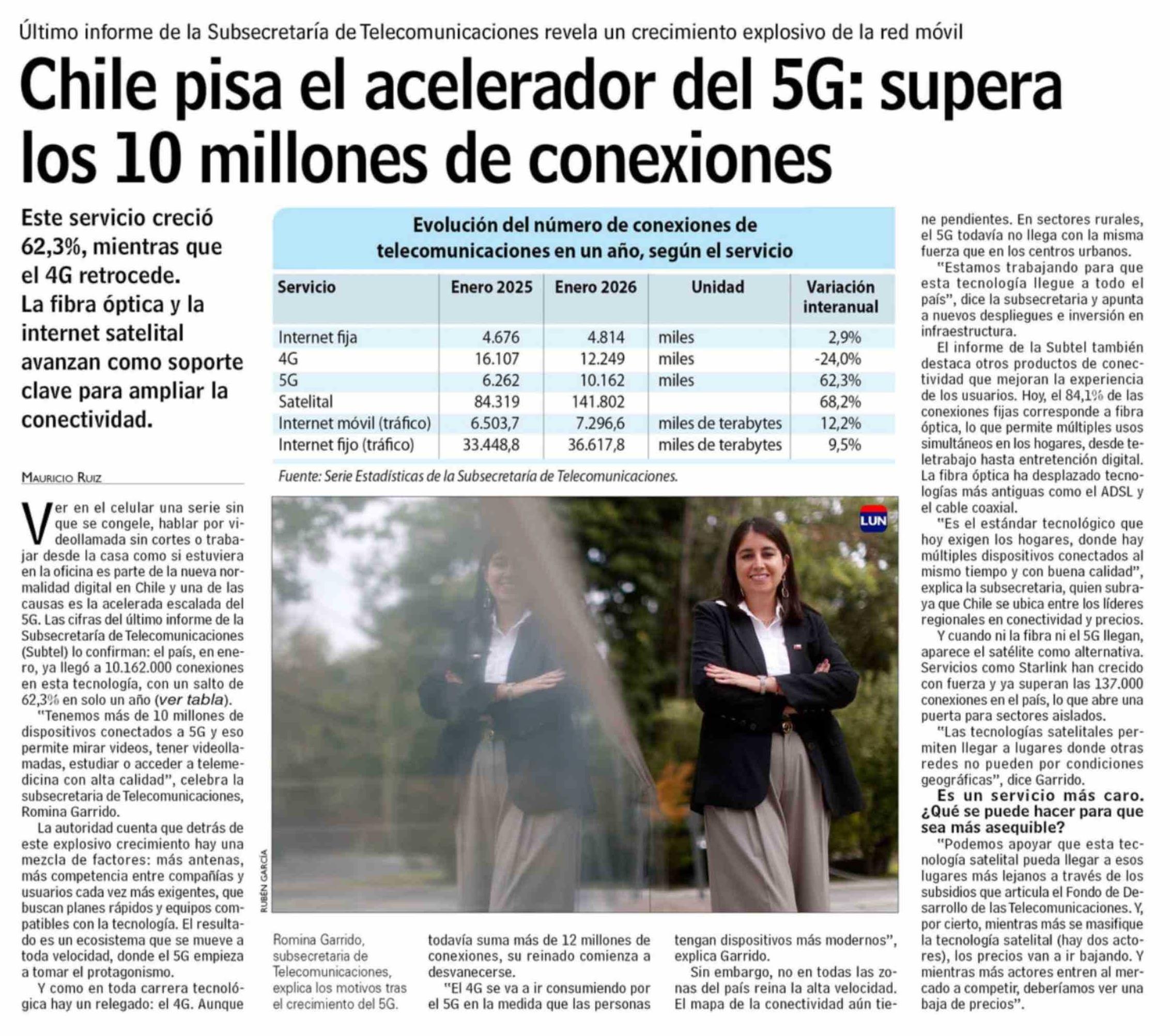 Chile pisa el acelerador del 5G: supera los 10 millones de conexiones 13-04-2026 Las Últimas Noticias |