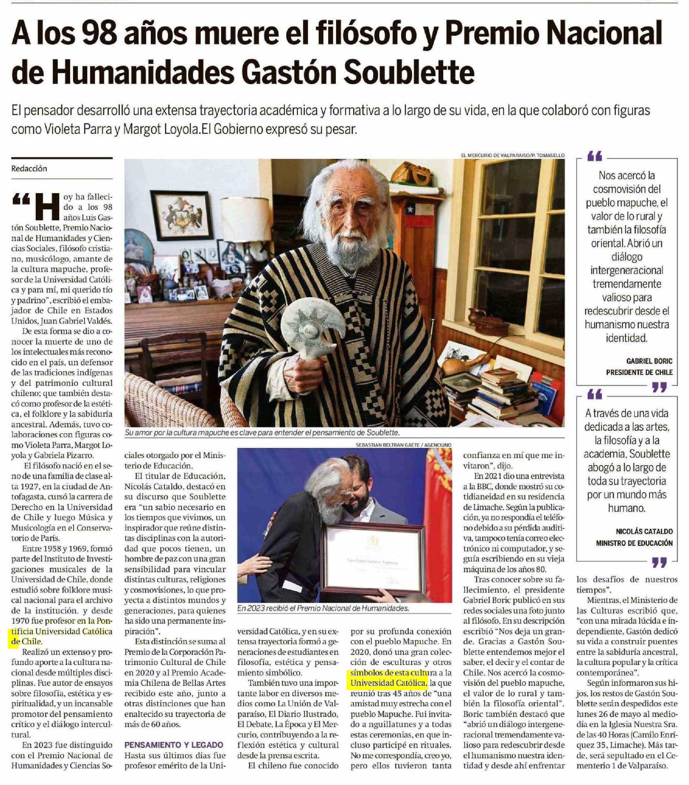 | Título: | A los 98 años muere el filósofo y Premio Nacional de Humanidades Gastón Soublette |