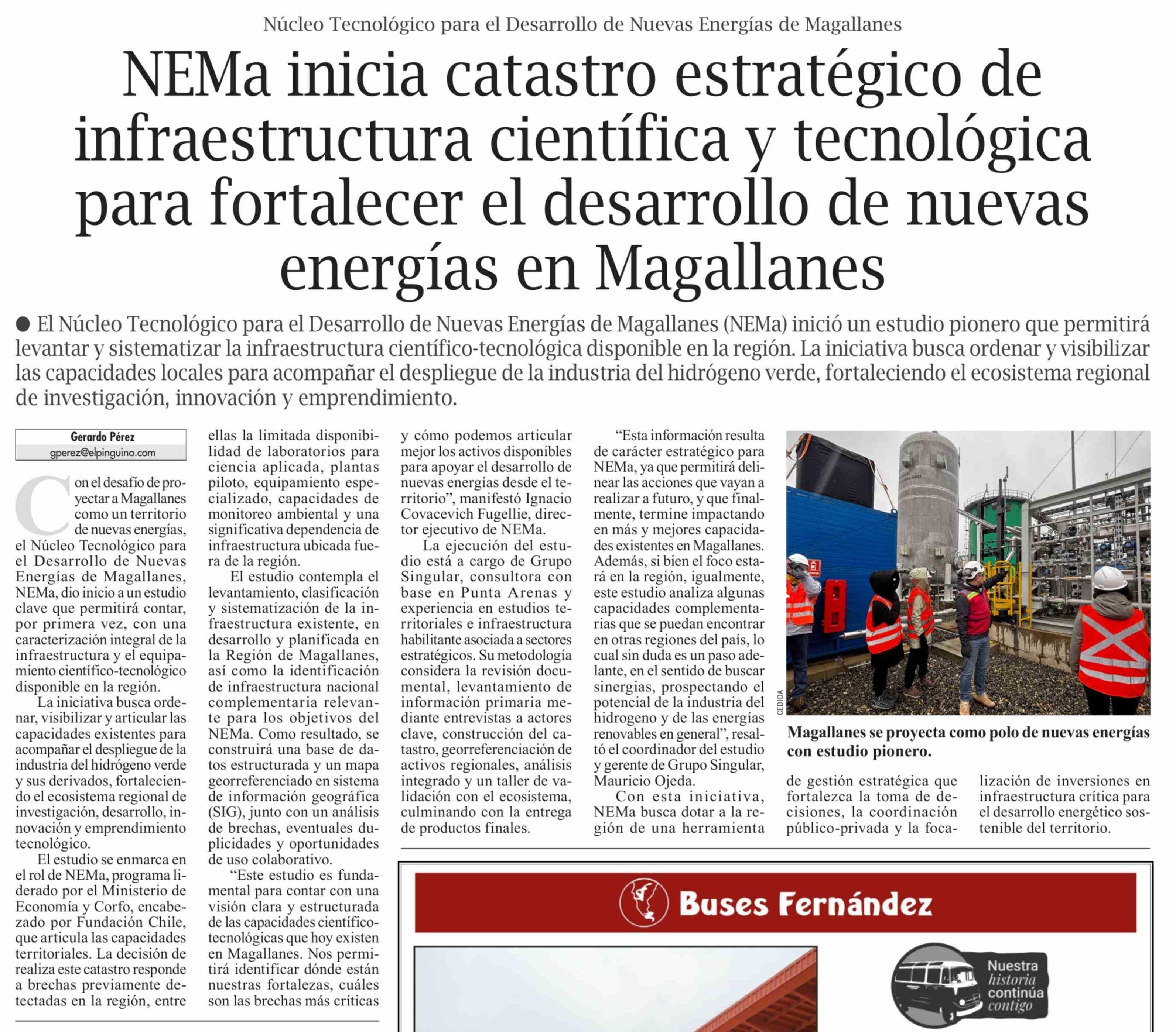 NEMa inicia catastro estratégico de infraestructura científica y tecnológica para fortalecer el desarrollo de nuevas energías en Magallanes 23-02-2026 El Pingüino |