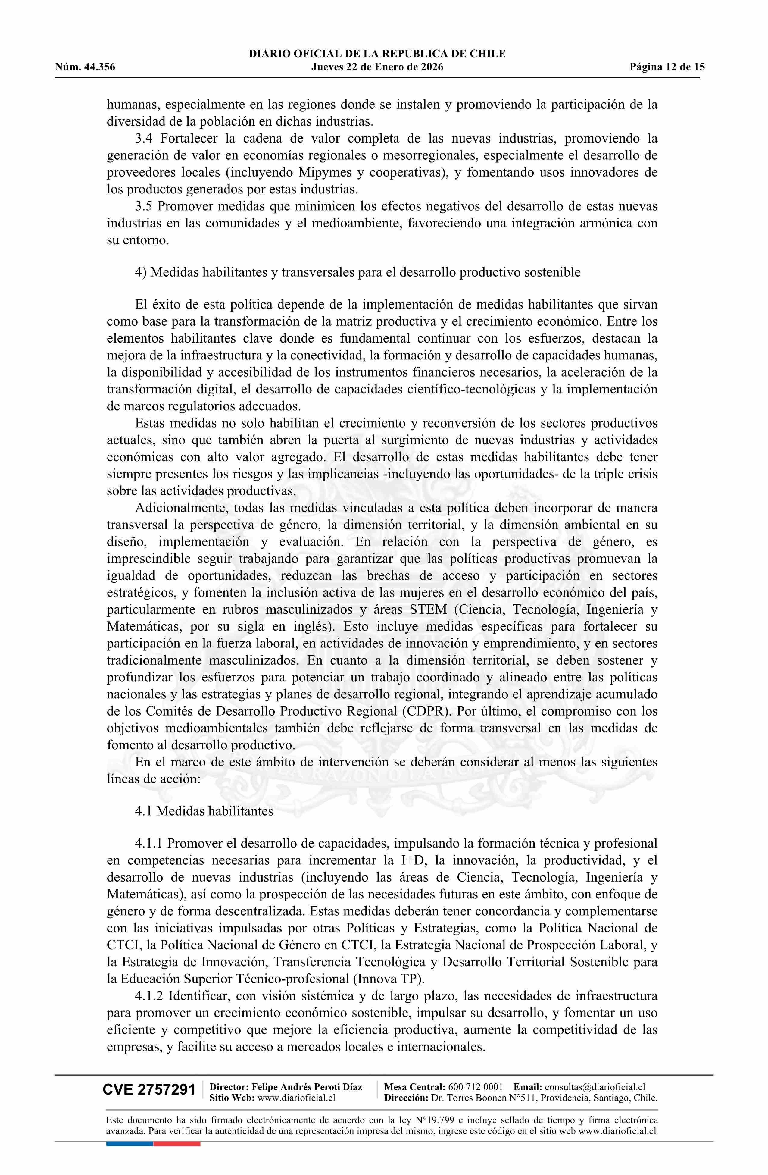 Decreto número 76, de 2025.- Aprueba la Política Nacional de Desarrollo Productivo Sostenible 22-01-2026 Diario Oficial Edición Electrónica |
