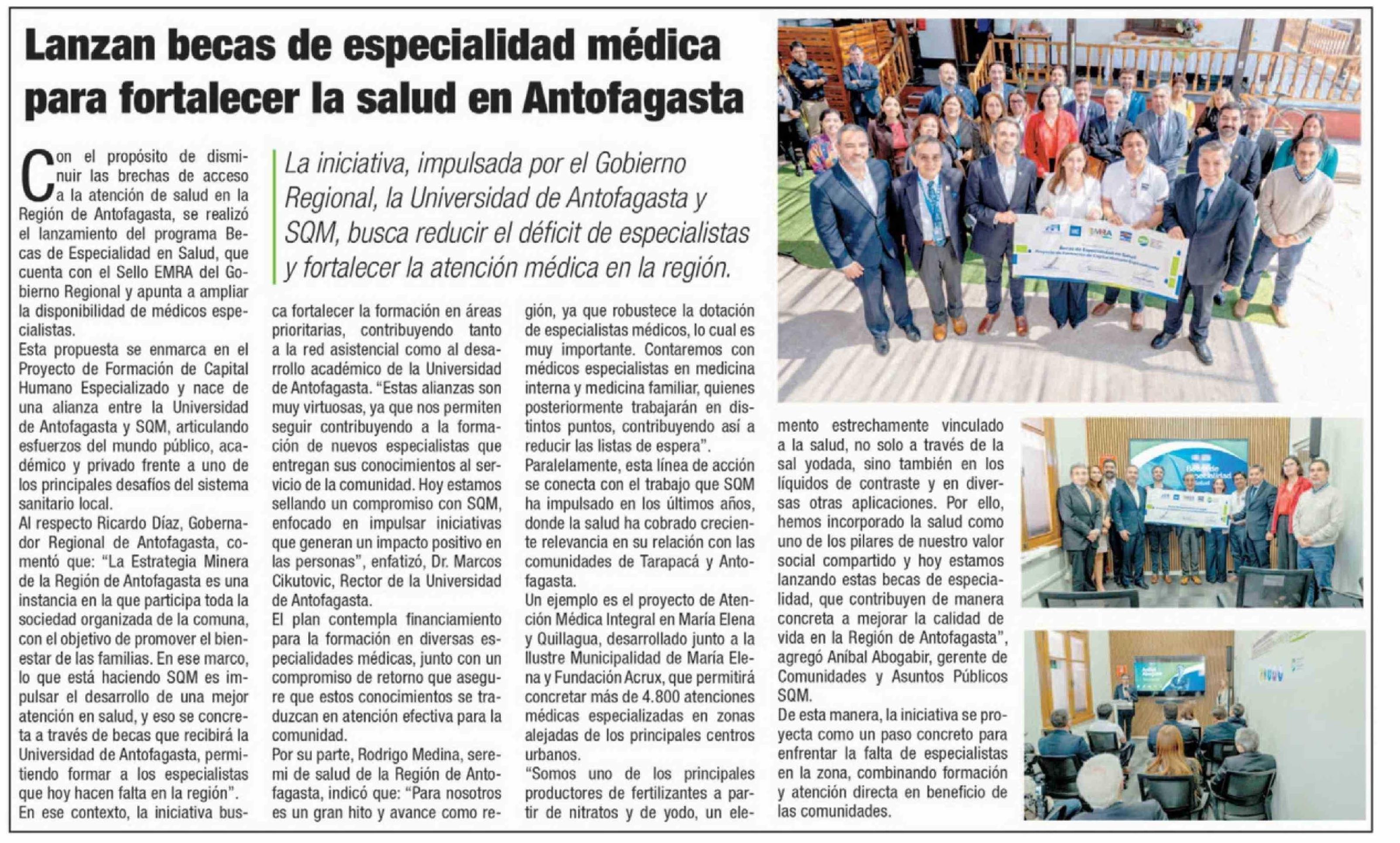 Lanzan becas de especialidad médica para fortalecer la salud en Antofagasta 11-04-2026 La Estrella de Antofagasta |
