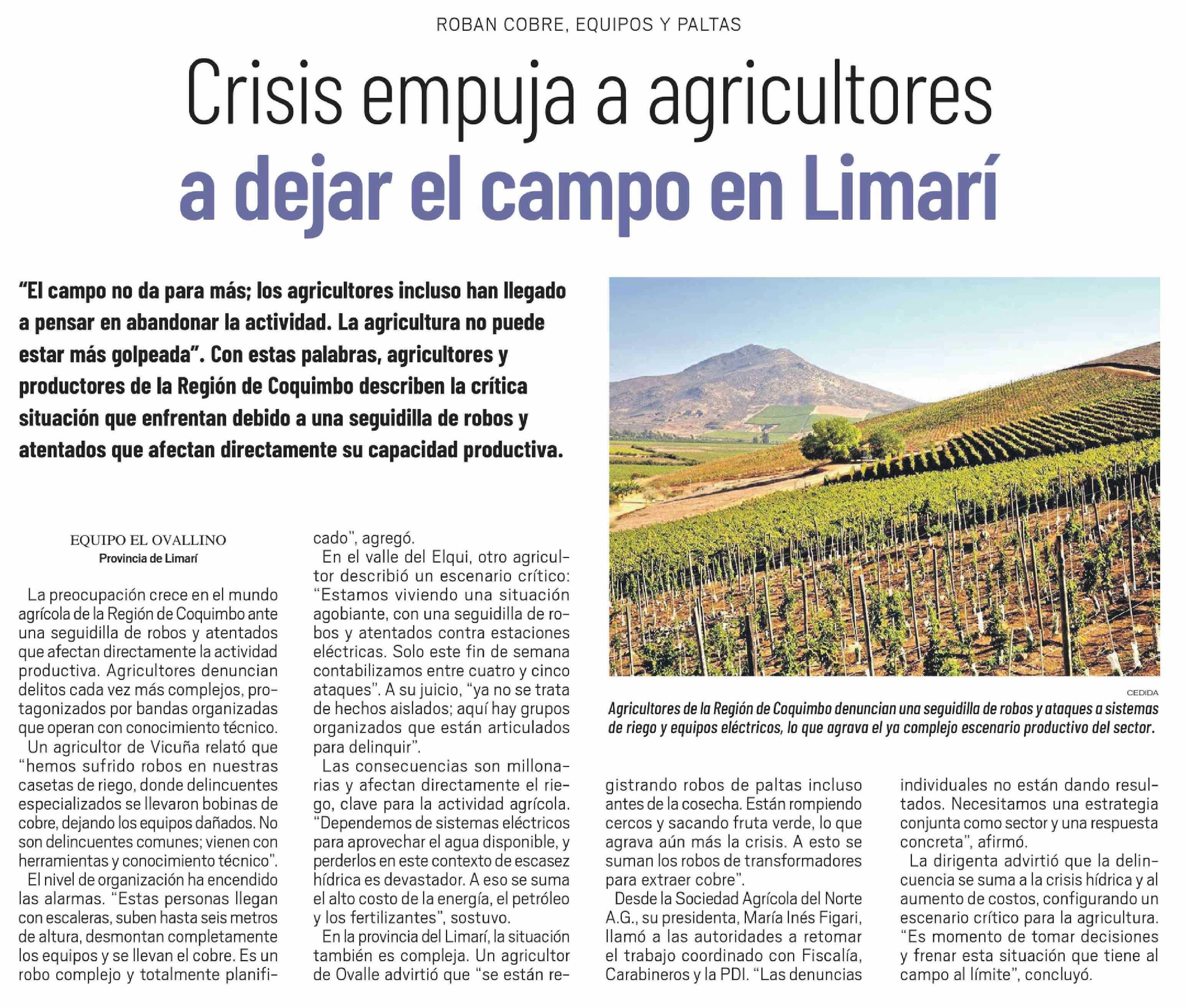 Crisis empuja a agricultores a dejar el campo en Limarí 08-04-2026 El Ovallino |