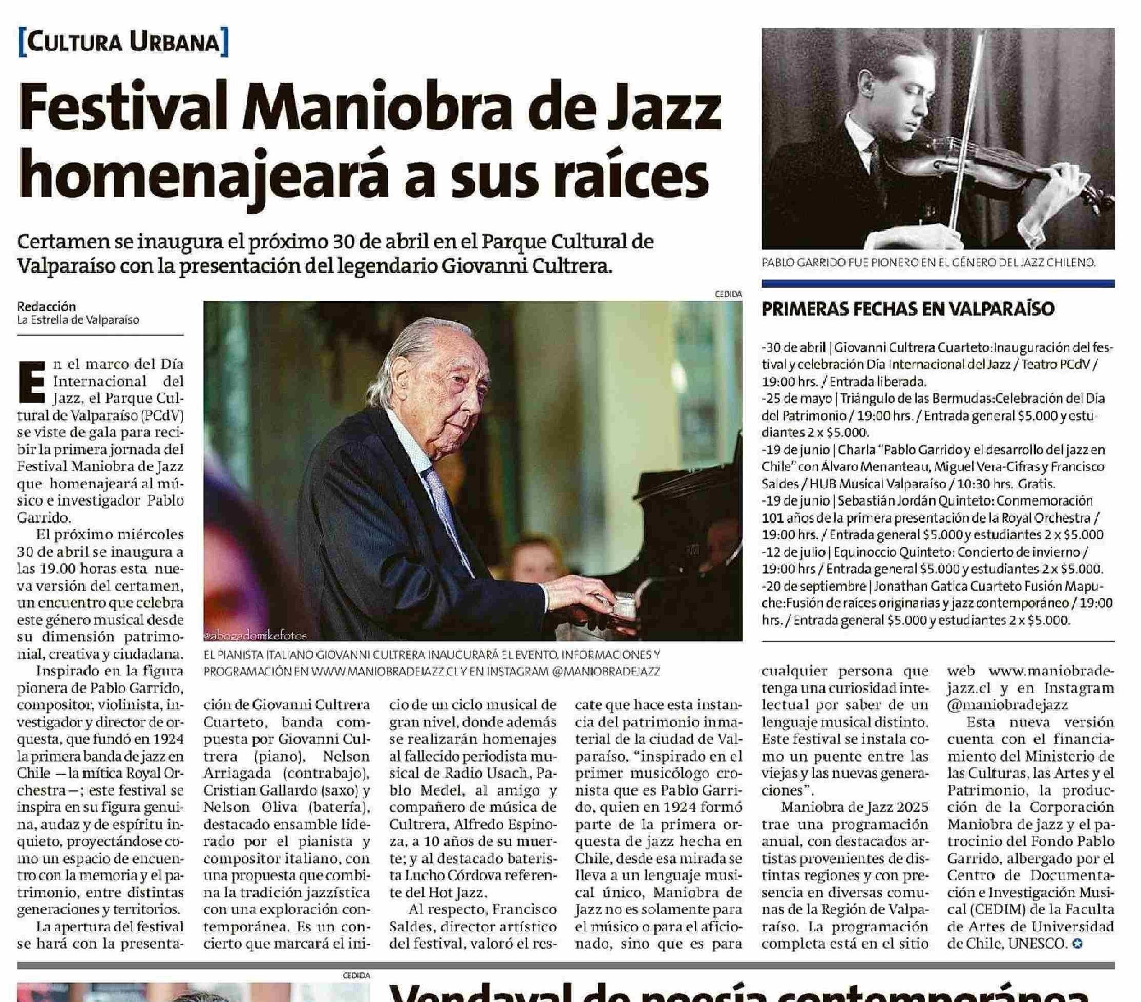 Festival Maniobra de Jazz homenajeará a sus raíces 19-04-2025 La Estrella de Valparaíso |