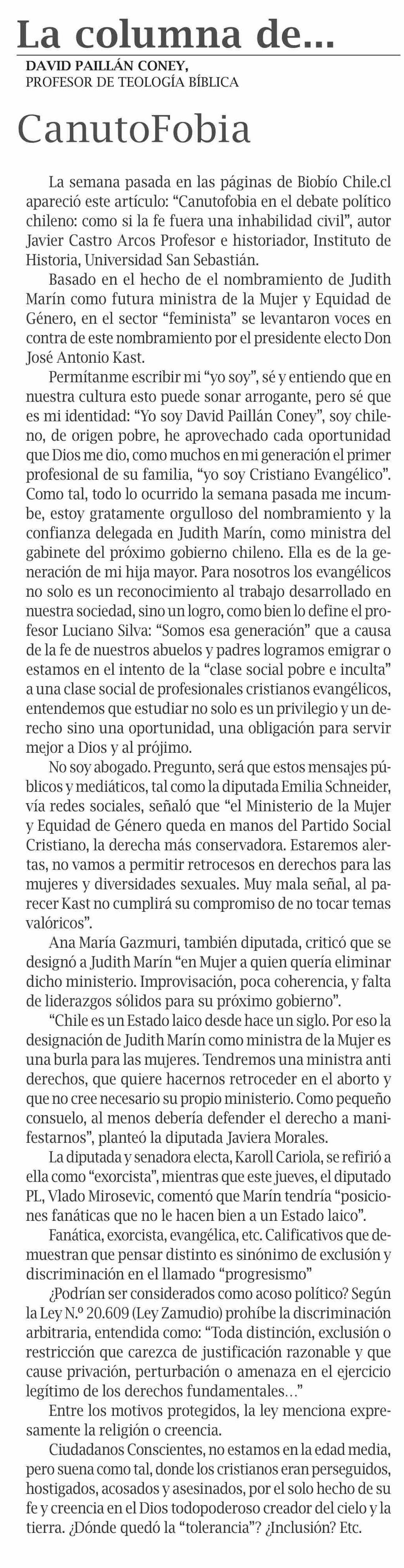 Columnas de Opinión: CanutoFobia 26-01-2026 El Pingüino |