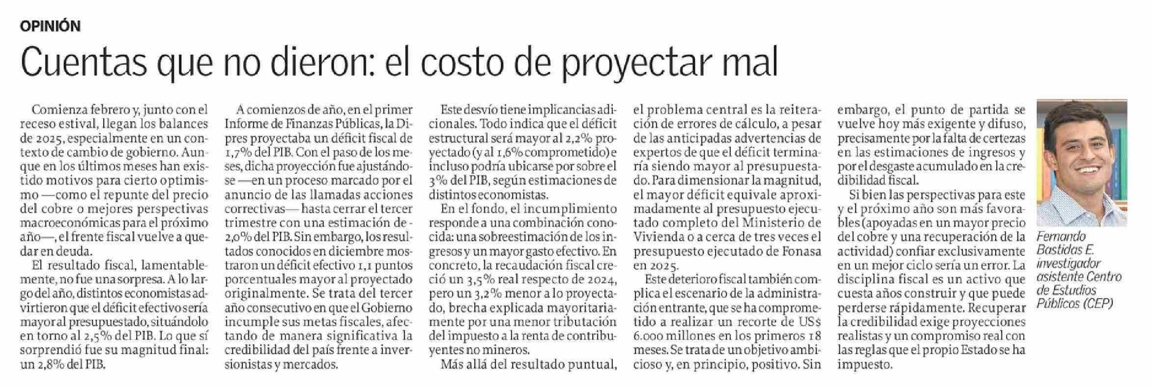 Columnas de Opinión: Cuentas que no dieron: el costo de proyectar mal 08-02-2026 El Sur |