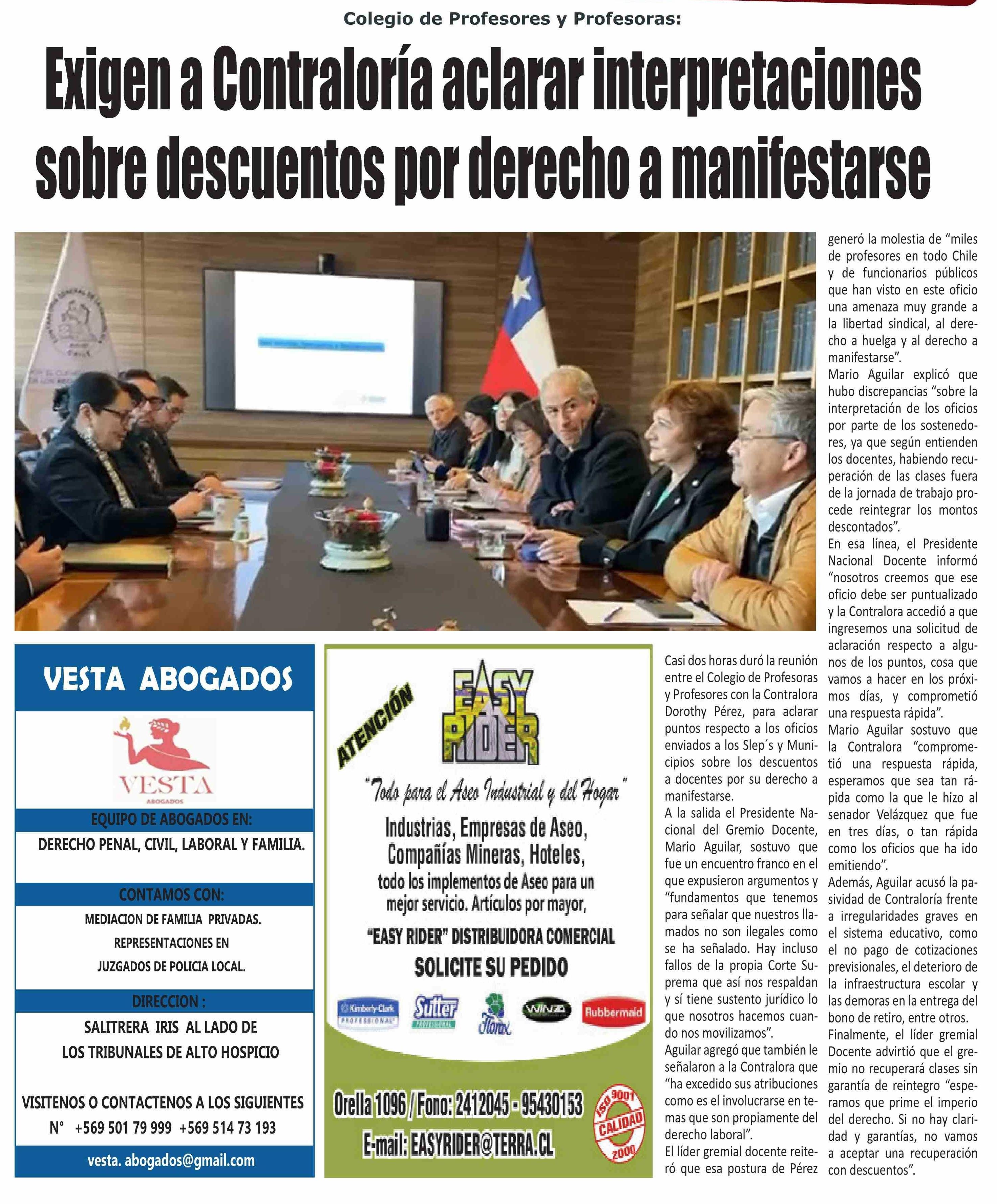 | Título: | Exigen a Contraloría aclarar interpretaciones sobre descuentos por derecho a manifestarse |