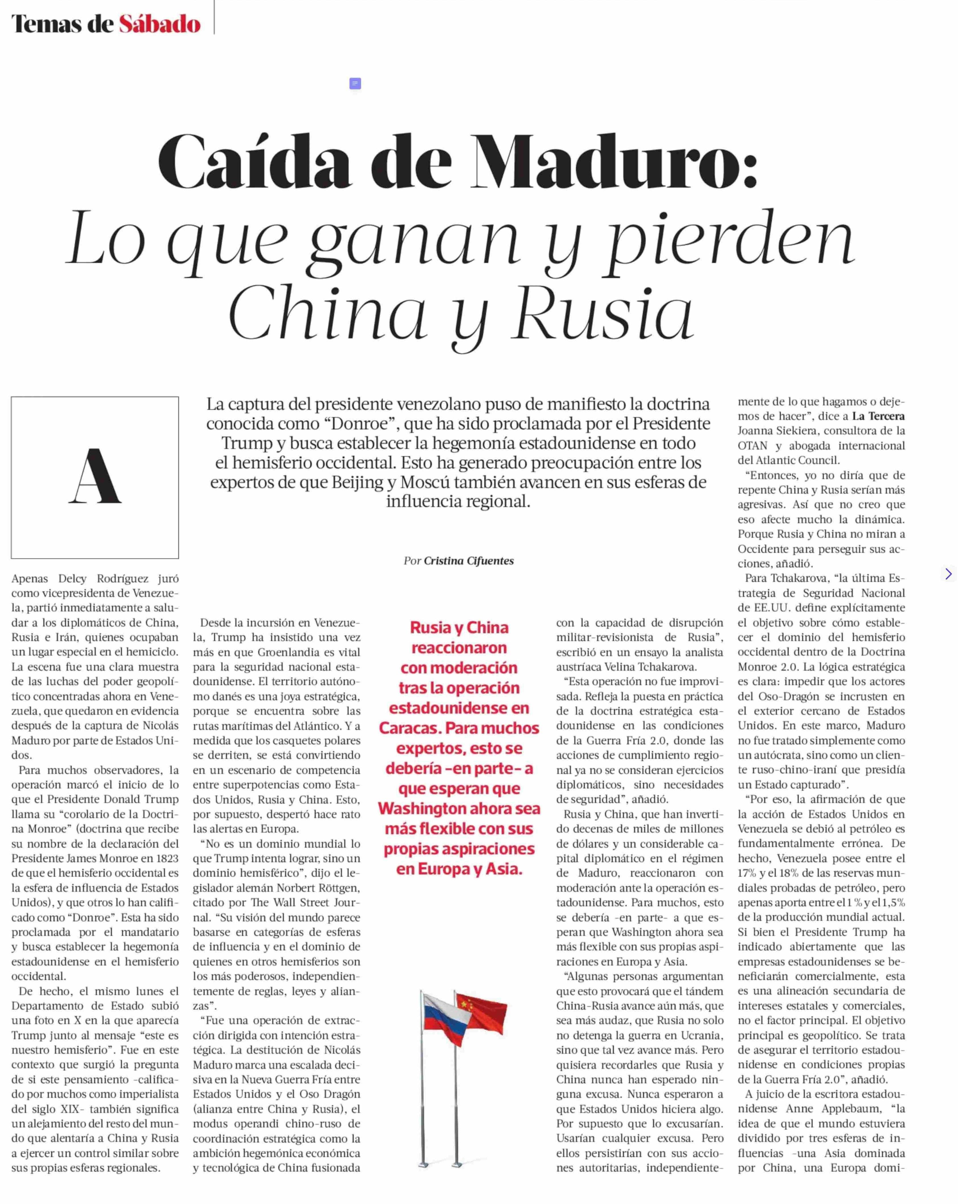 Caída de Maduro: Lo que ganan y pierden China y Rusia 10-01-2026 La Tercera |