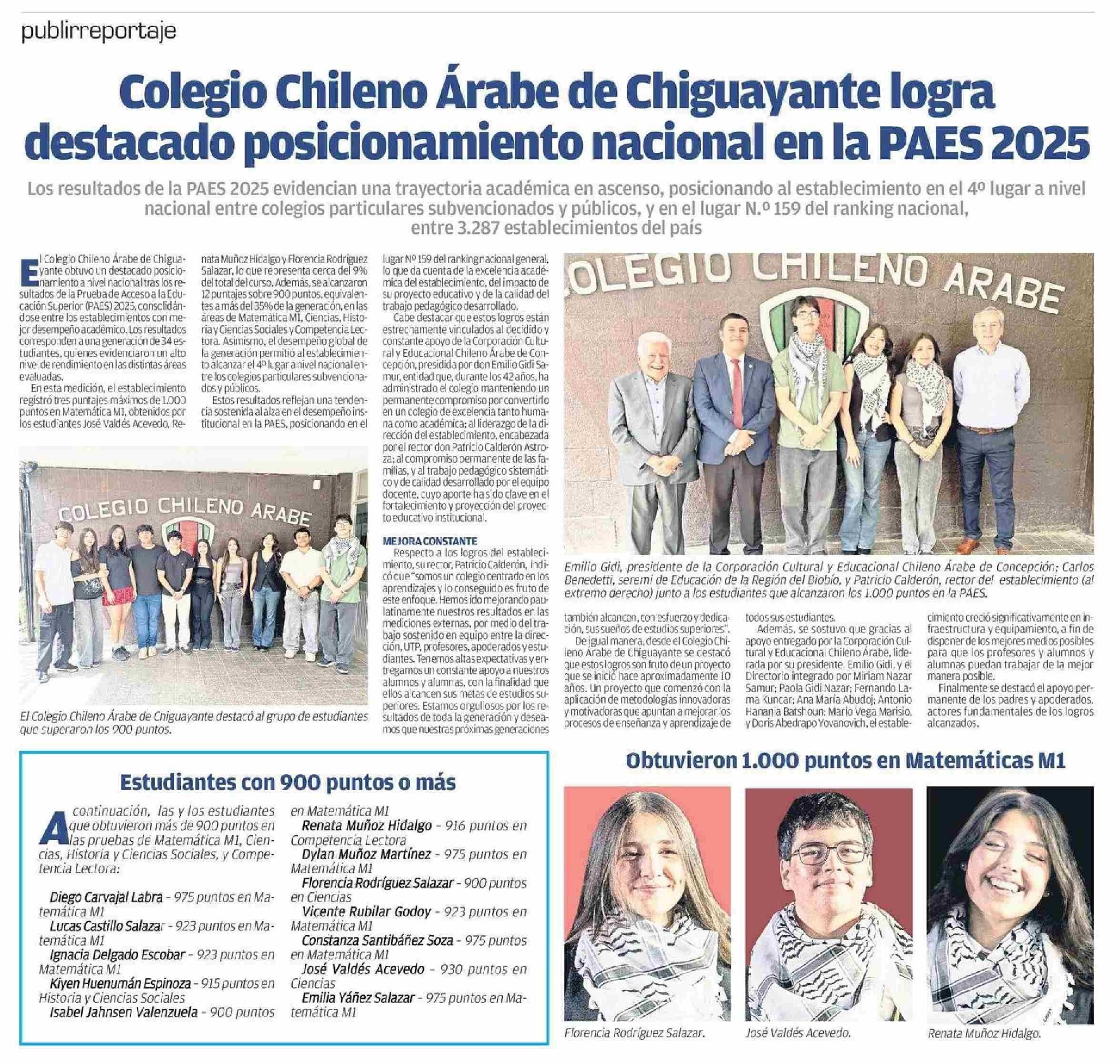 Título: Colegio Chileno Arabe de Chiguayante logra destacado posicionamiento nacional en la PAES 2025