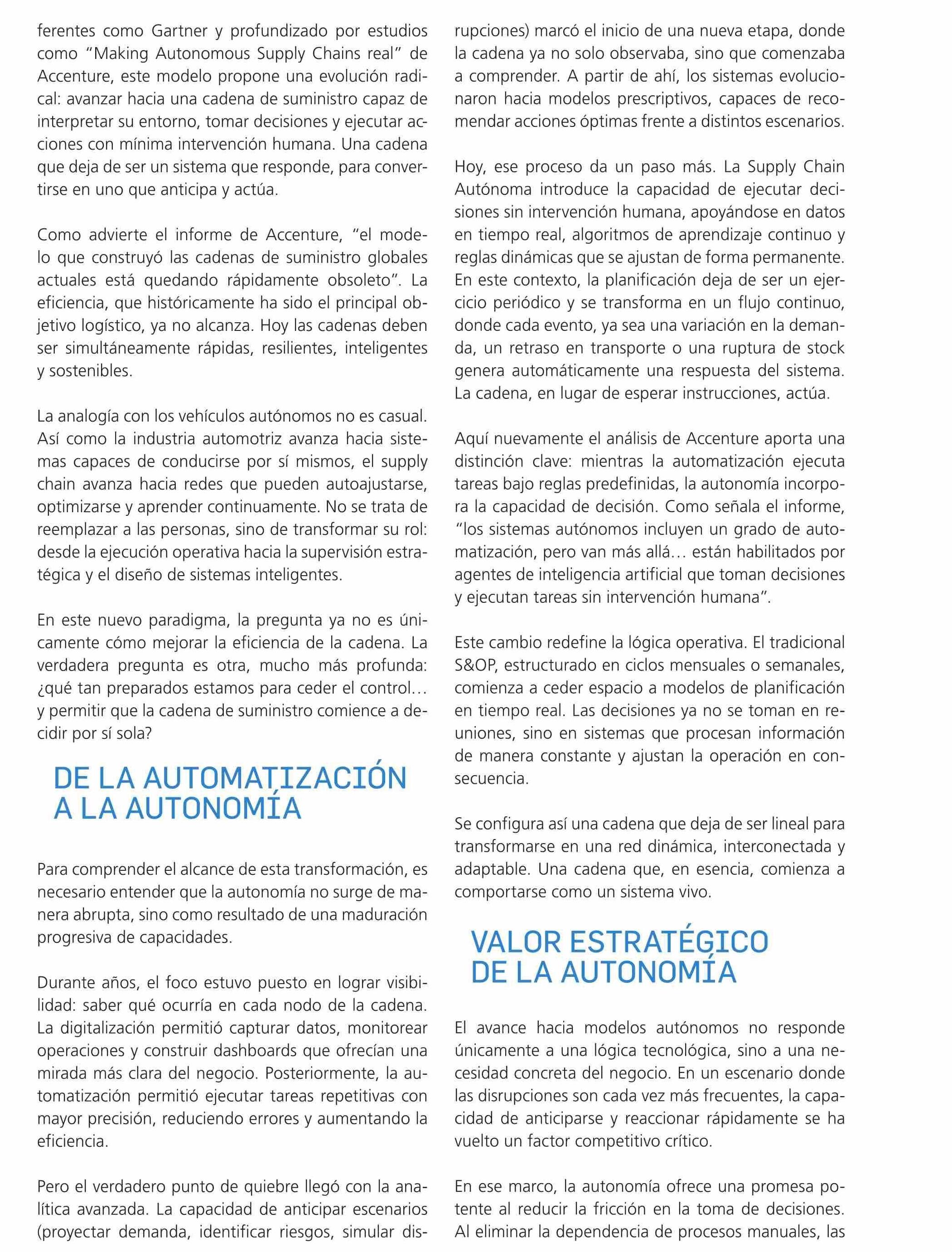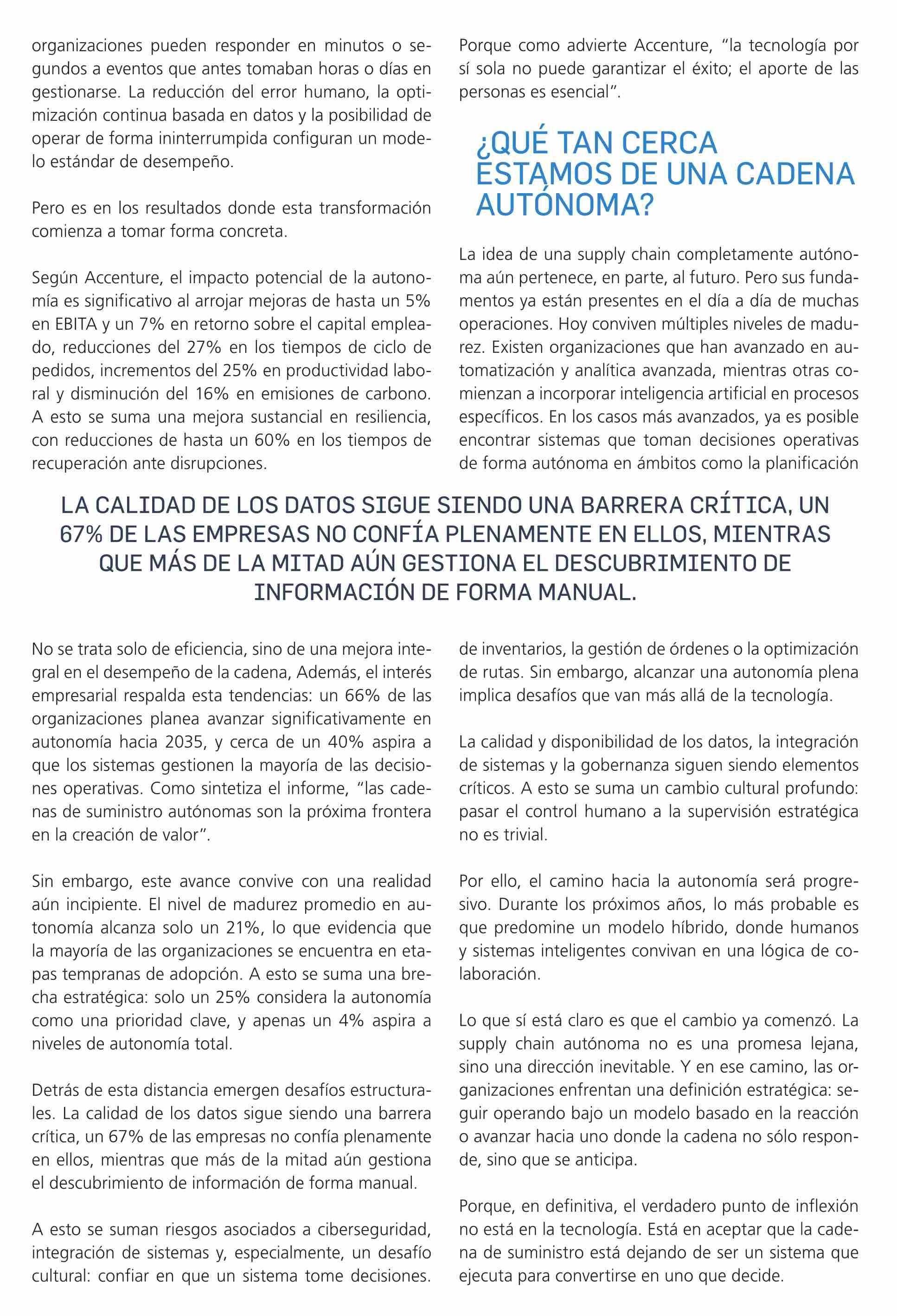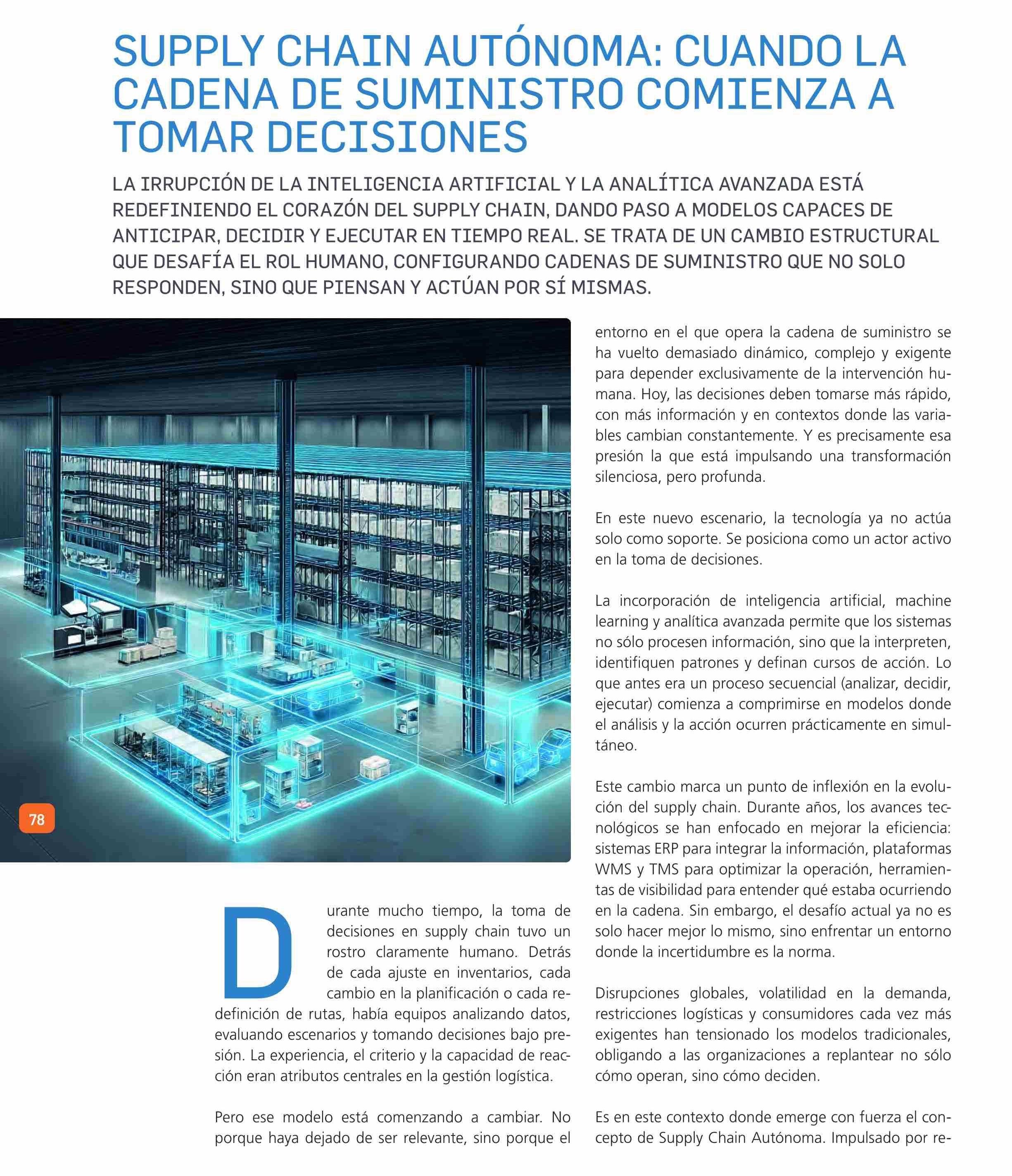 SUPPLY CHAIN AUTÓNOMA: CUANDO LA CADENA DE SUMINISTRO COMIENZA A TOMAR DECISIONES 23-04-2026 Revista Logistec |