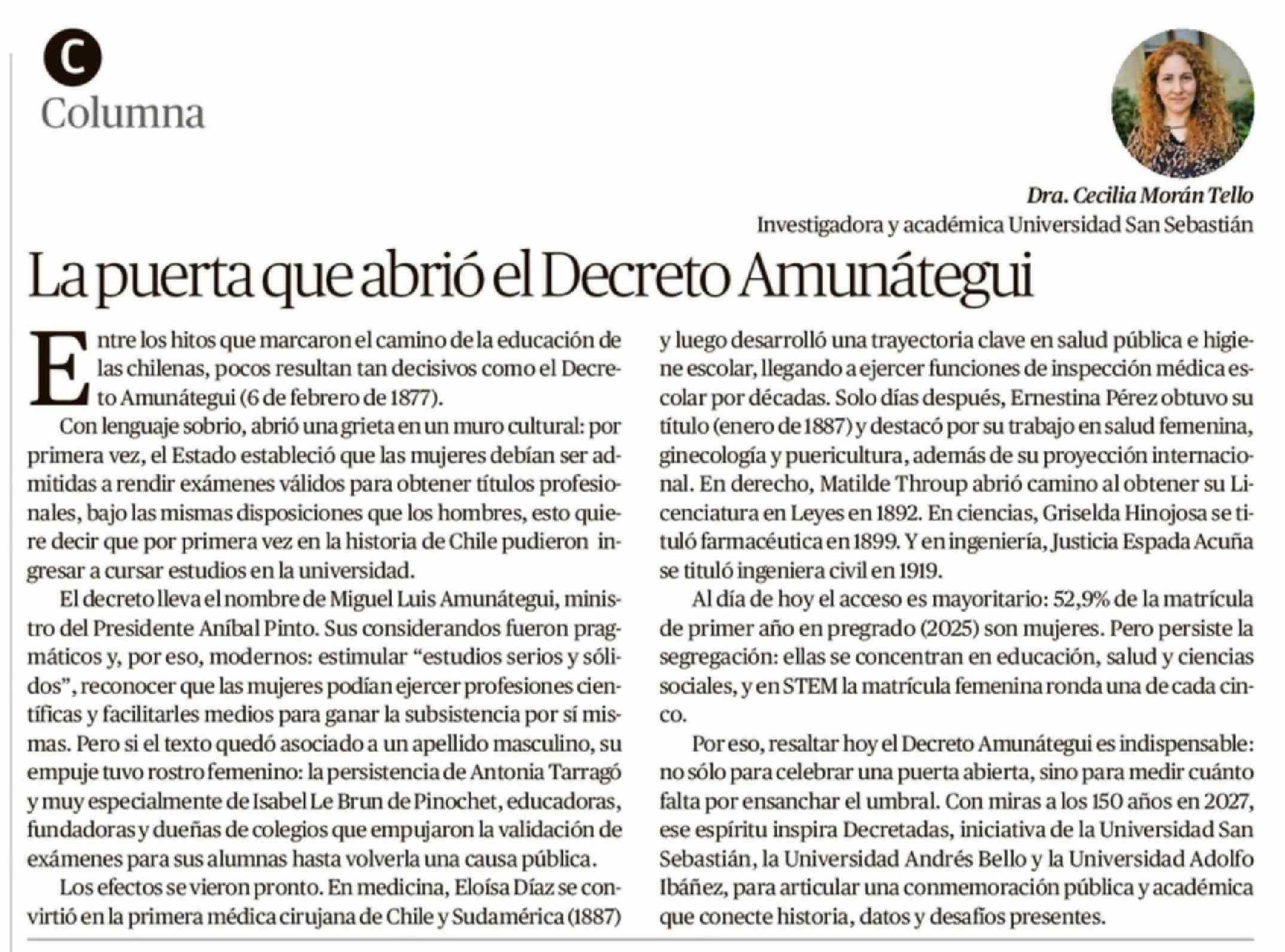 Título: Columnas de Opinión: La puerta que abrió el Decreto Amunátegui