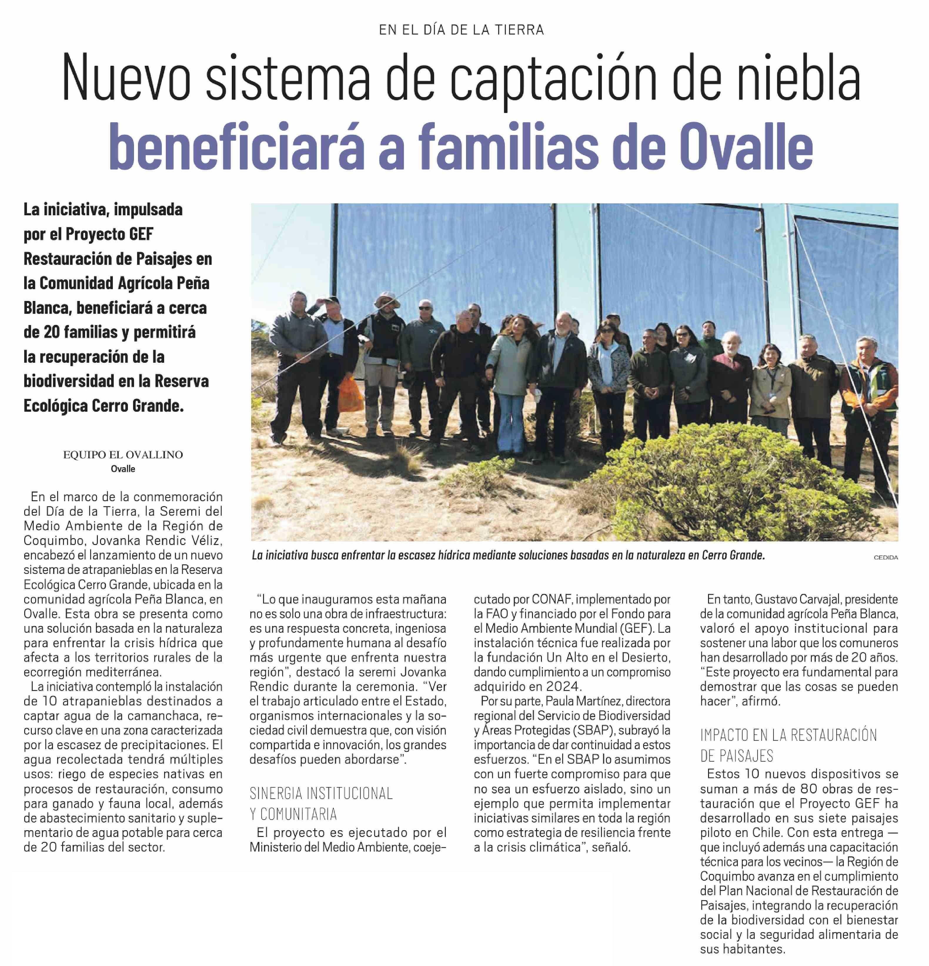 Título: Nuevo sistema de captación de niebla beneficiará a familias de Ovalle