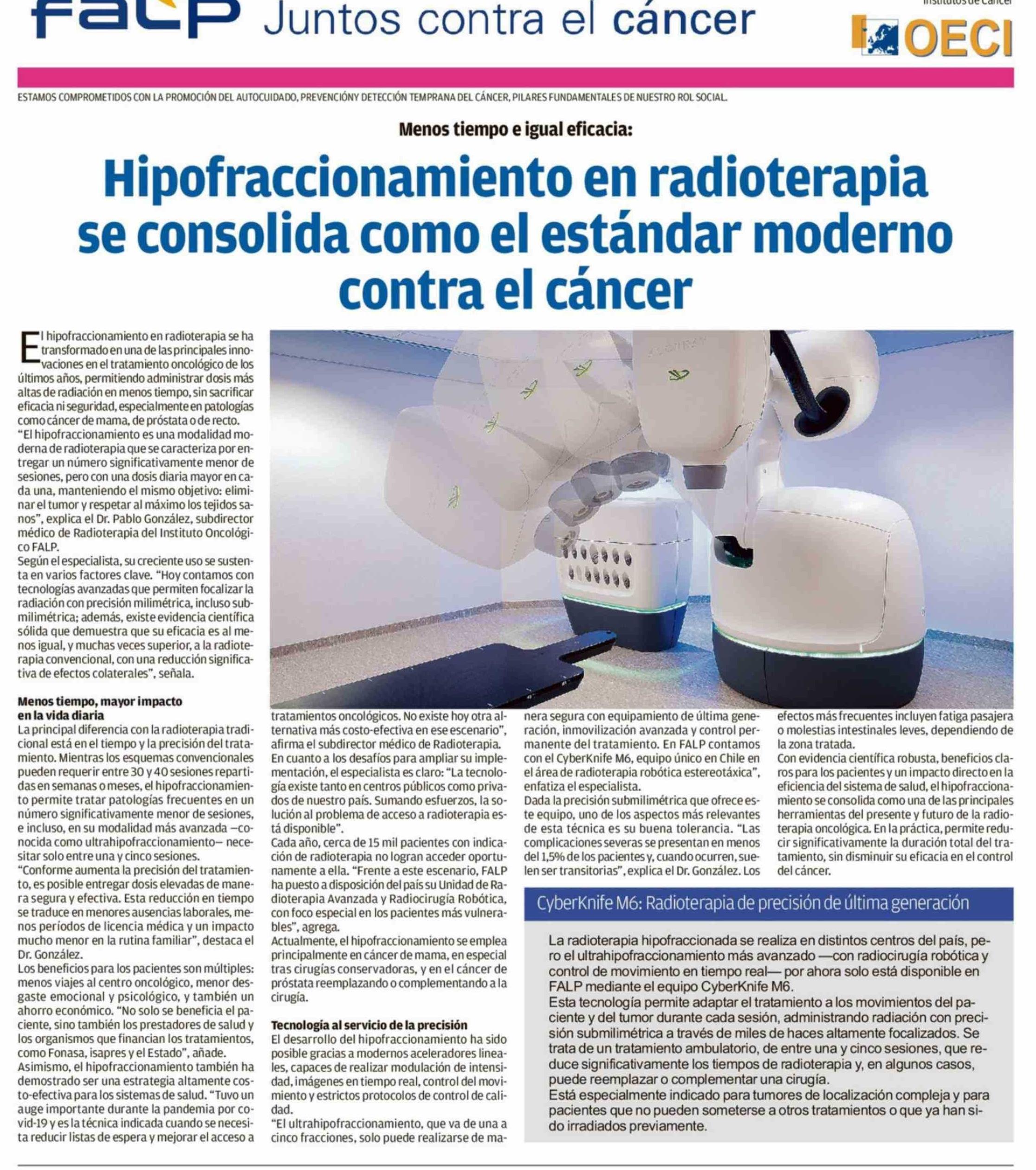 Título: Hipofraccionamiento en radioterapia se consolida como el estándar moderno contra el cáncer