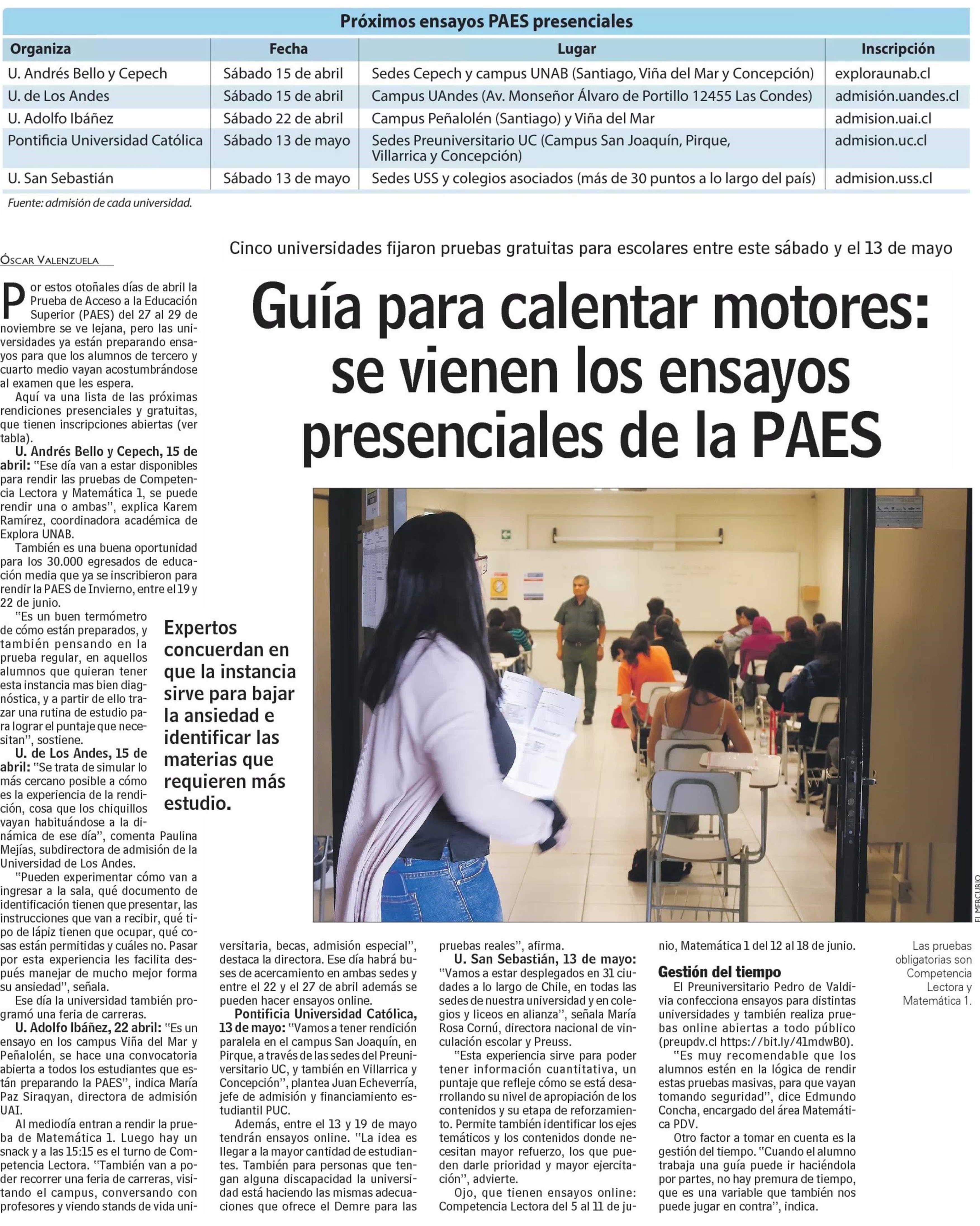 Guía para calentar motores: se vienen los ensayos presenciales de la PAES 12-04-2023 Las Últimas Noticias |