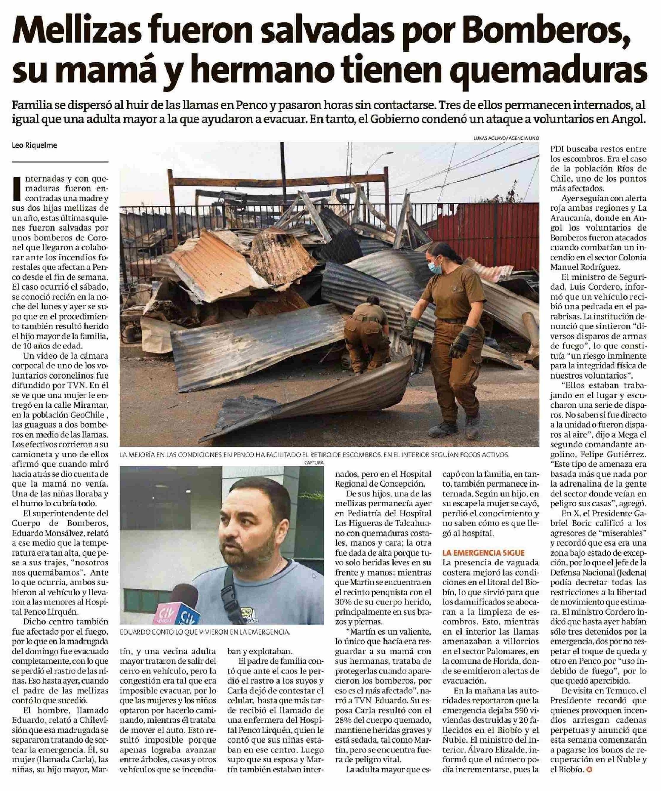 Mellizas fueron salvadas por Bomberos, su mamá y hermano tienen quemaduras 21-01-2026 La Estrella de Chiloé |