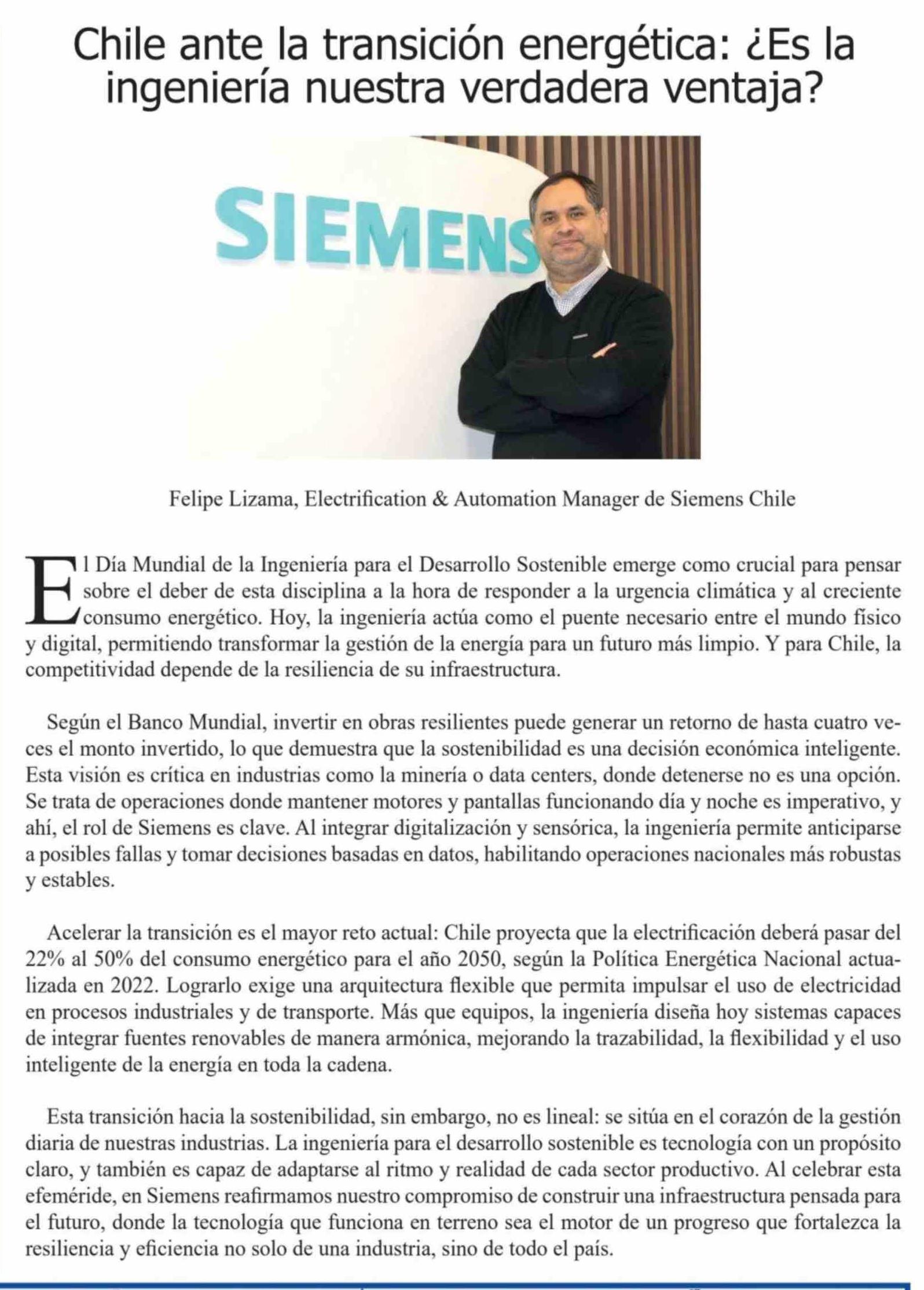 Columnas de Opinión: Chile ante la transición energética: ¿ Es la ingeniería nuestra verdadera ventaja? 05-03-2026 El Heraldo |