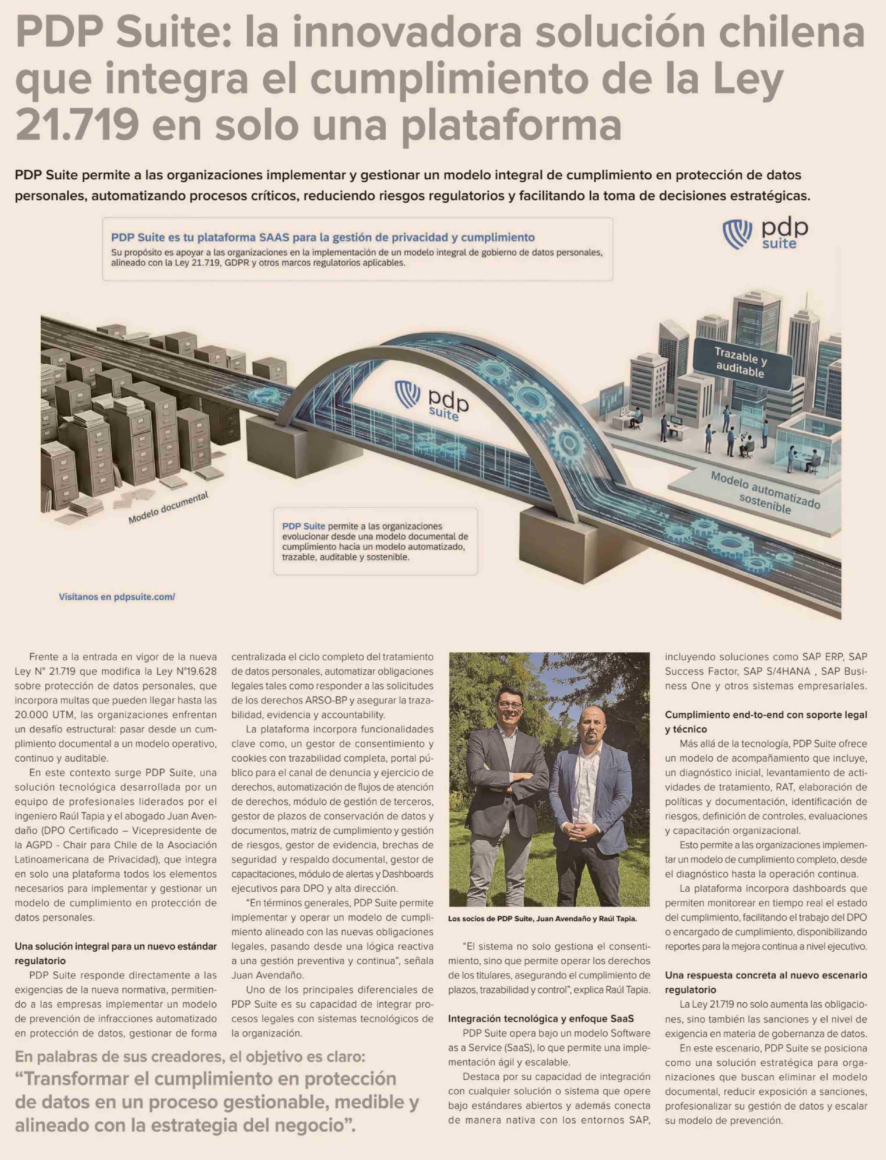 | Título: | PDP Suite: la innovadora solución chilena que integra el cumplimiento de la Ley 21.719 en solo una plataforma |