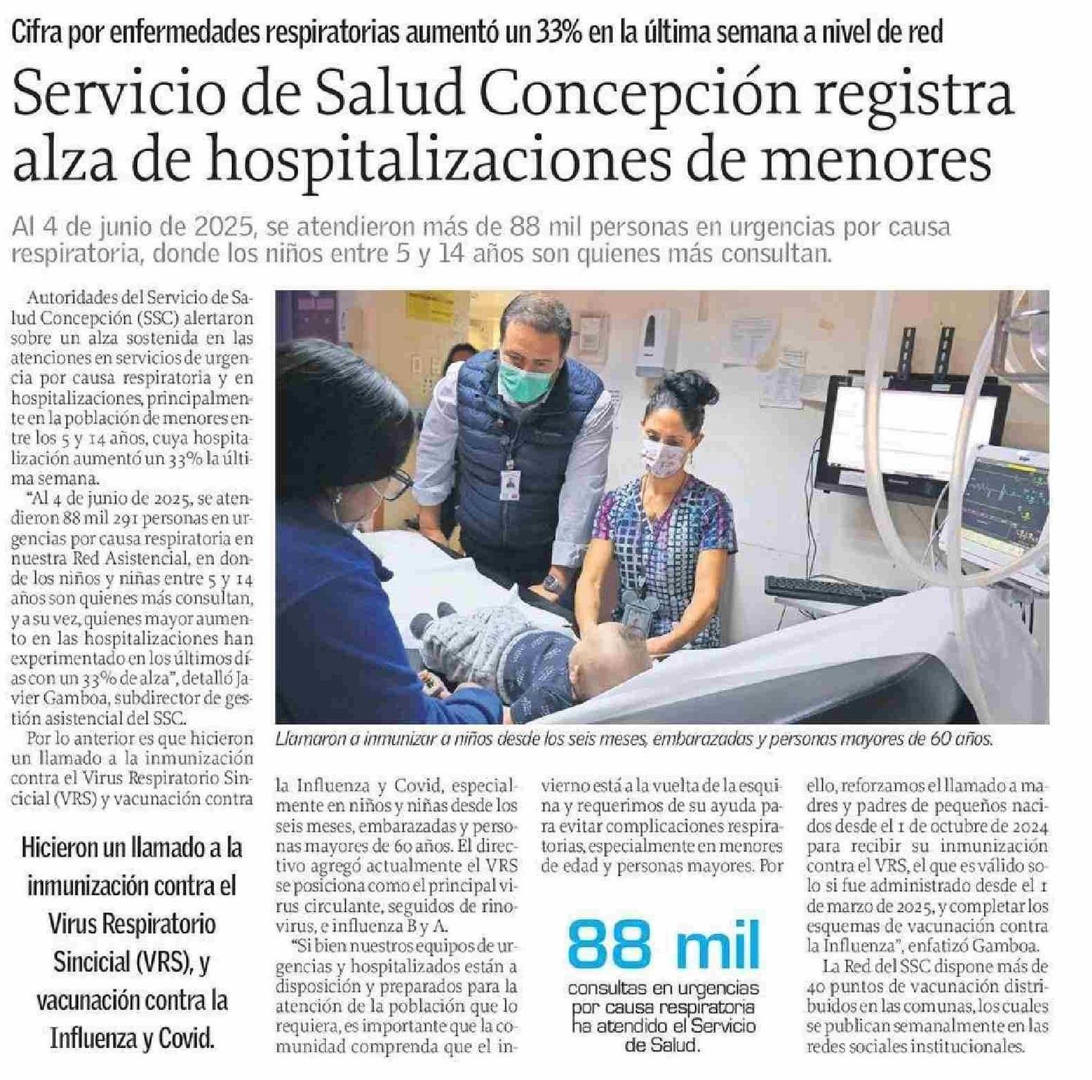 Servicio de Salud Concepción registra alza de hospitalizaciones de menores 08-06-2025 El Sur |