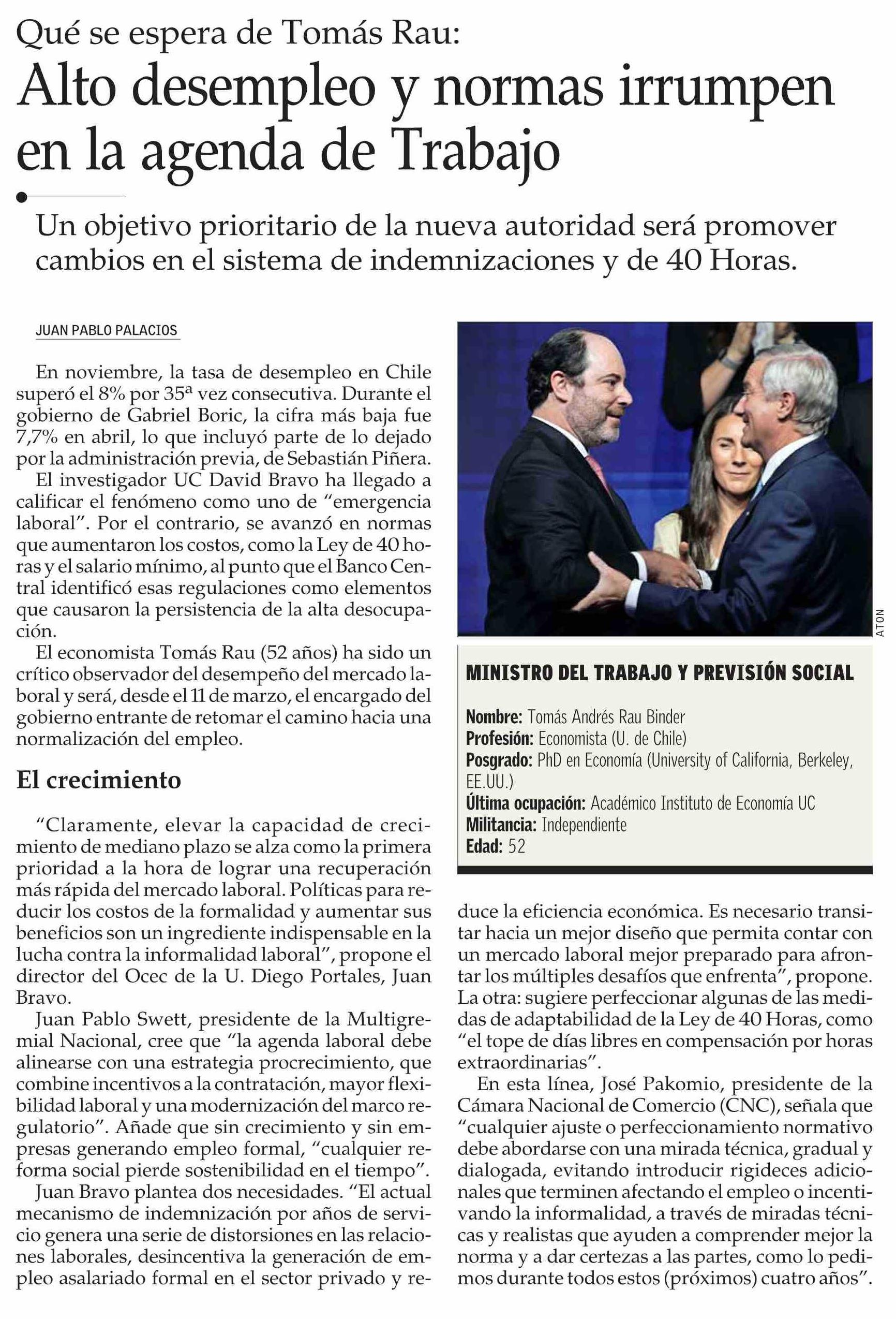 Alto desempleo y normas irrumpen en la agenda de Trabajo 21-01-2026 El Mercurio |
